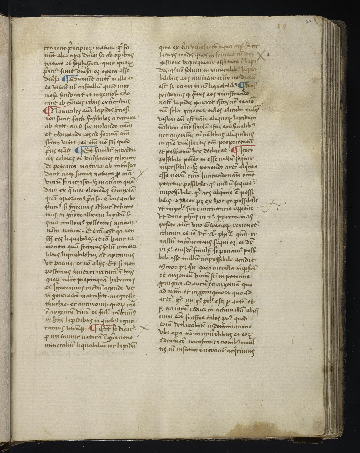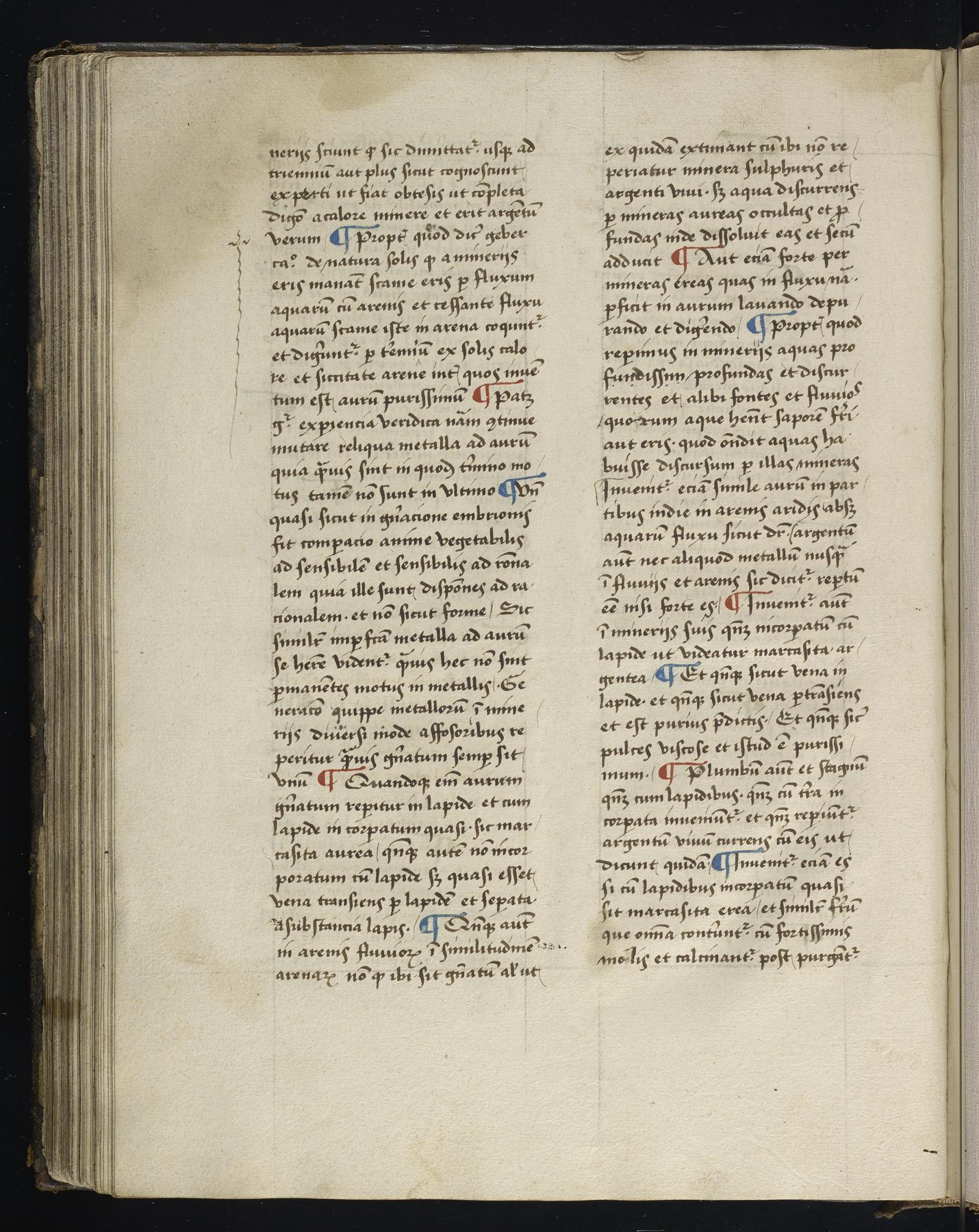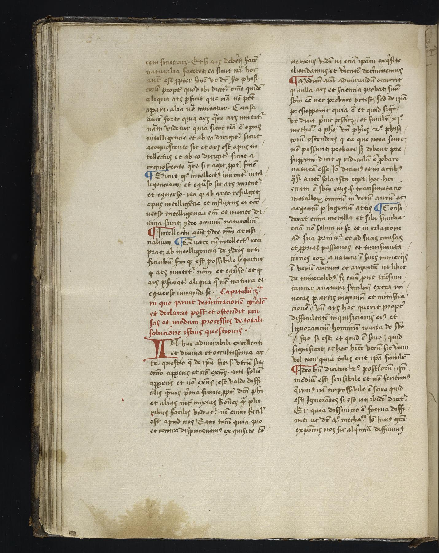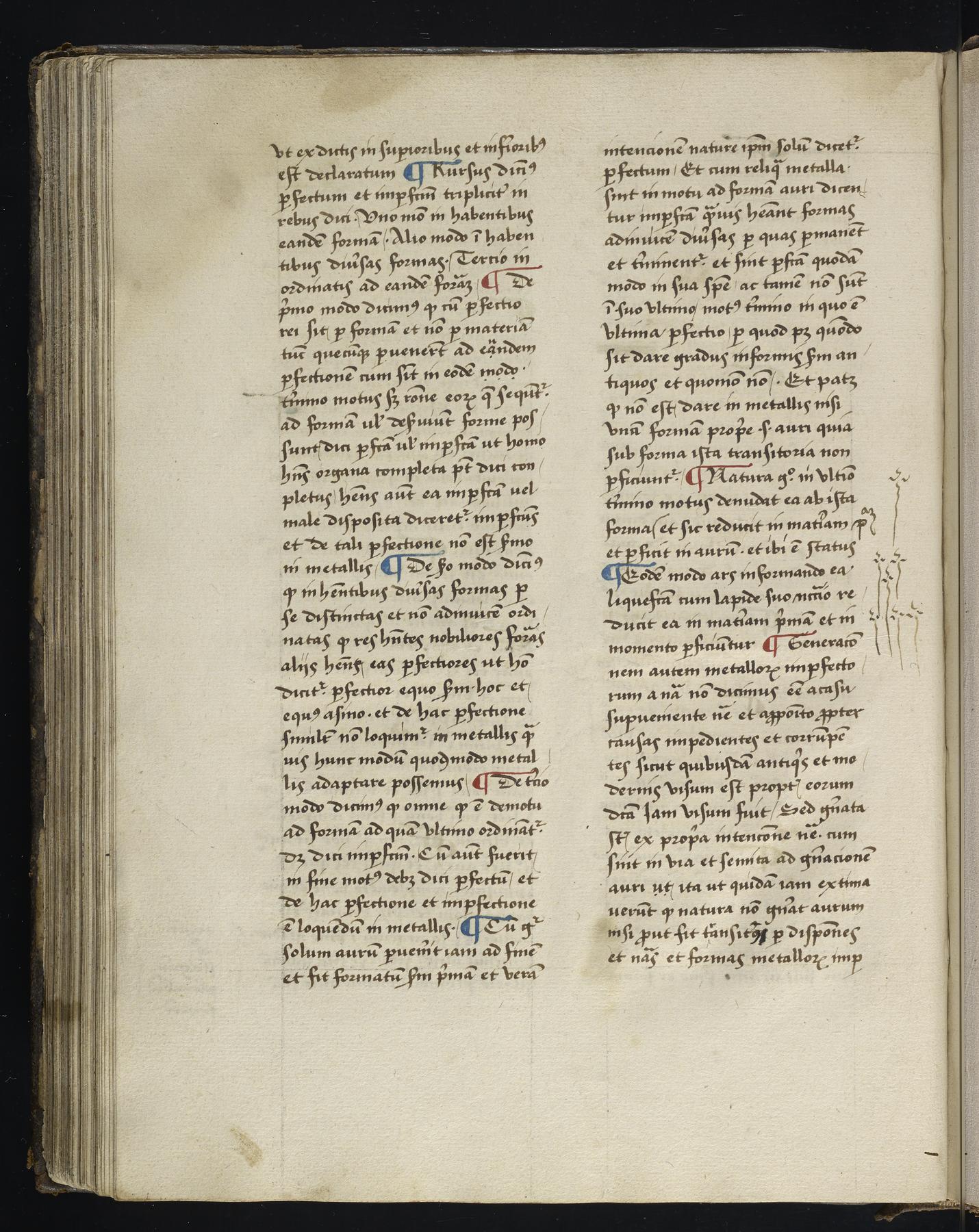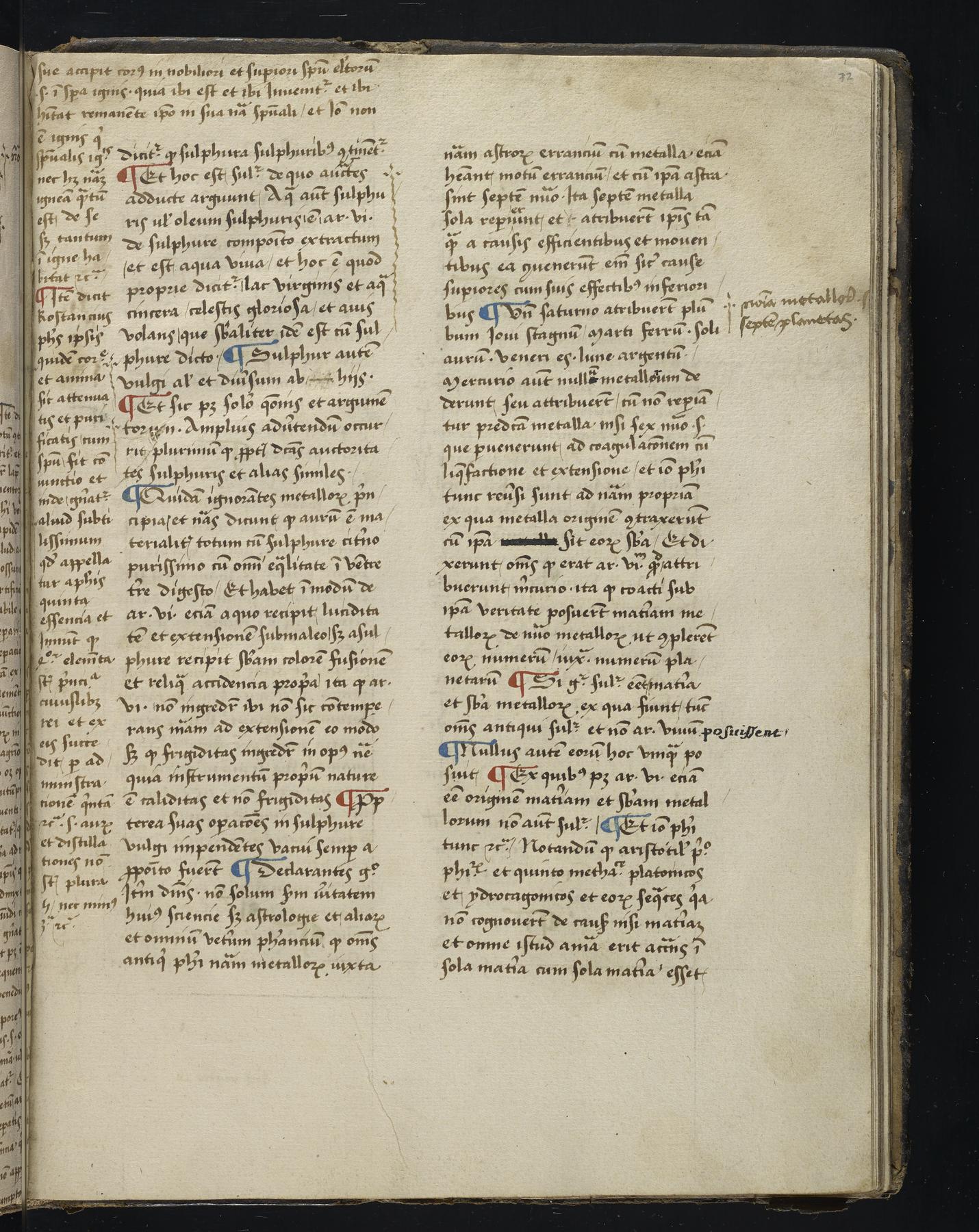 This manuscript contains a copy of a fourteenth-century alchemical treatise discussing the arguments for and against alchemy.