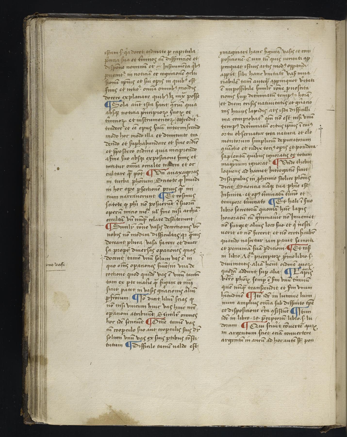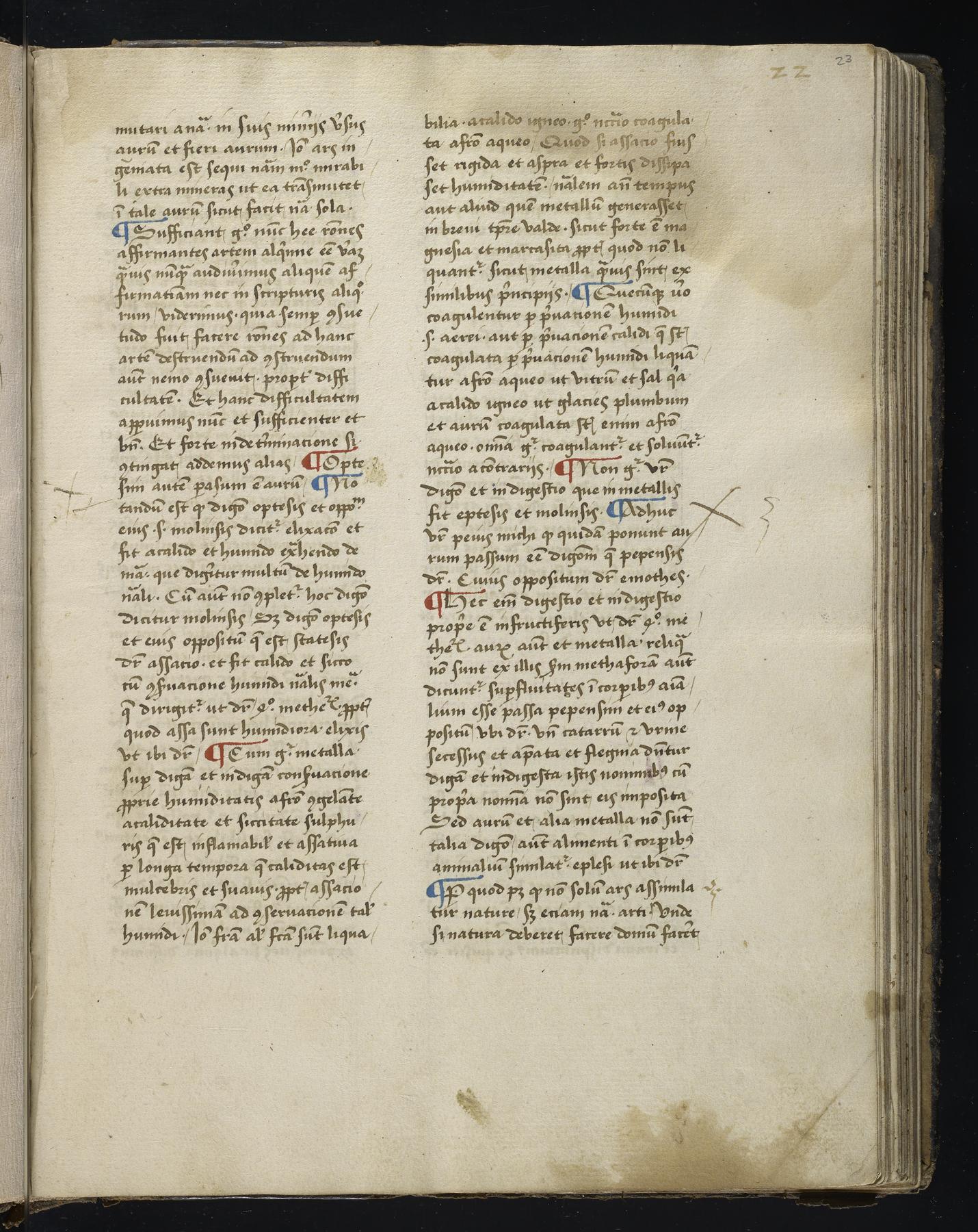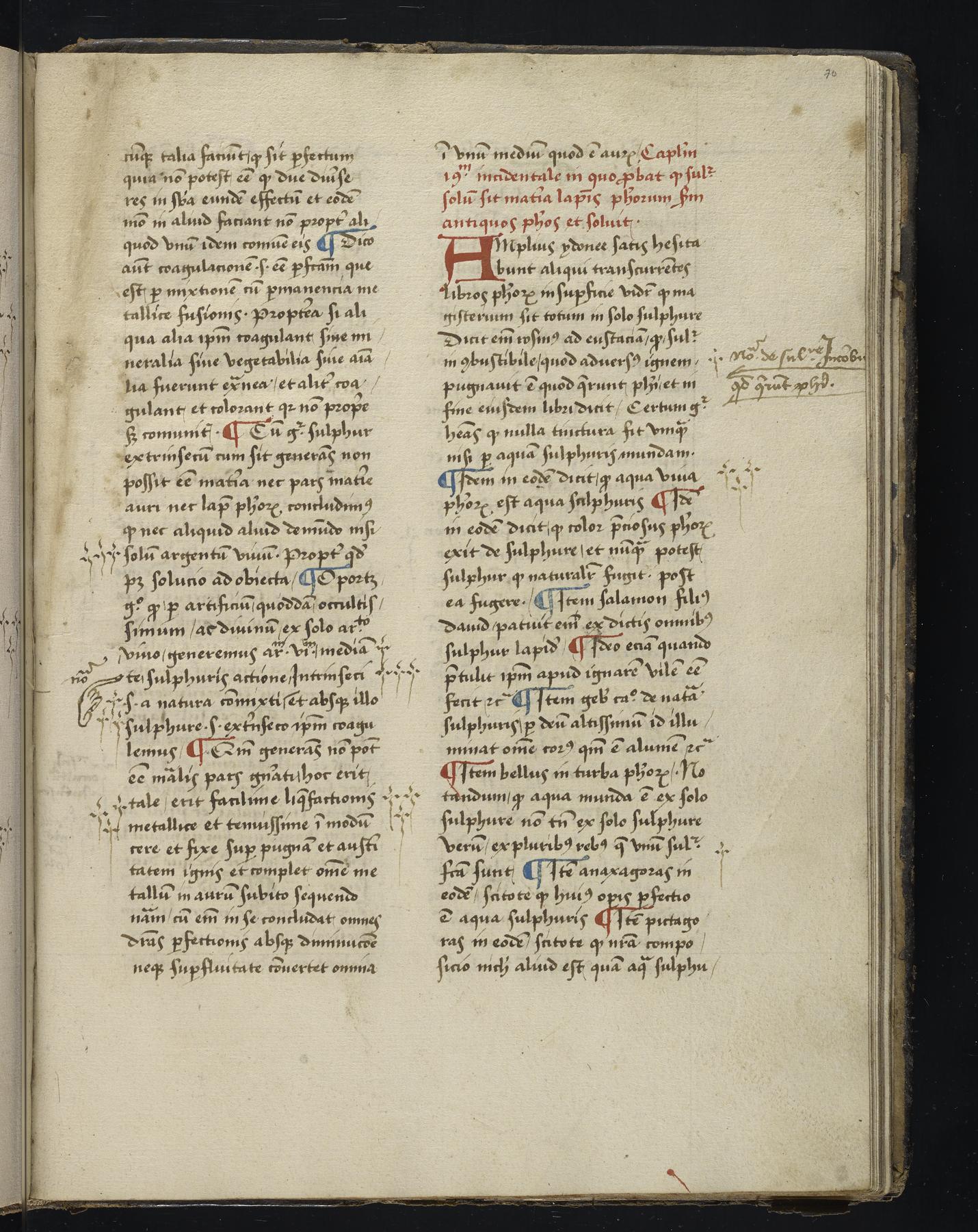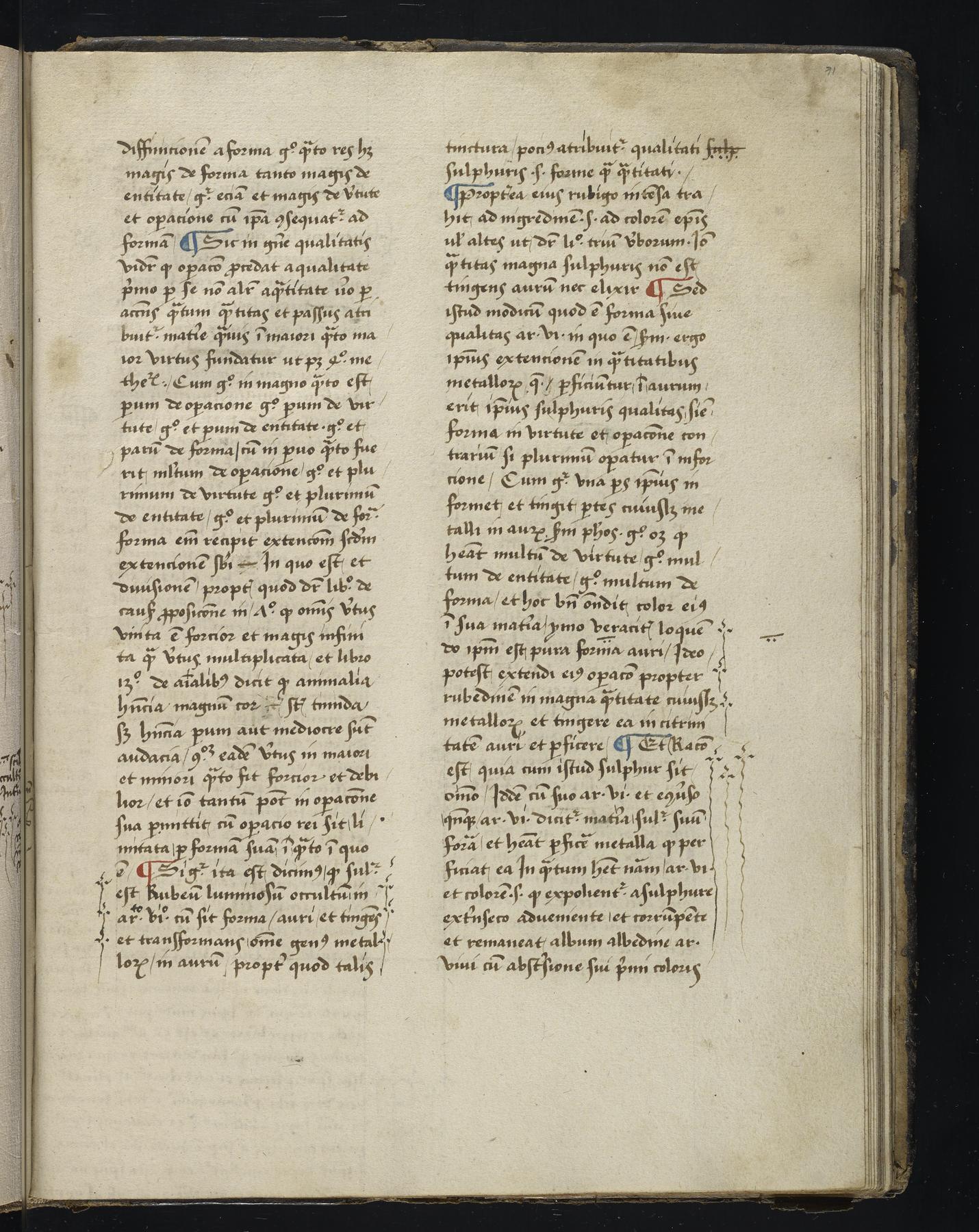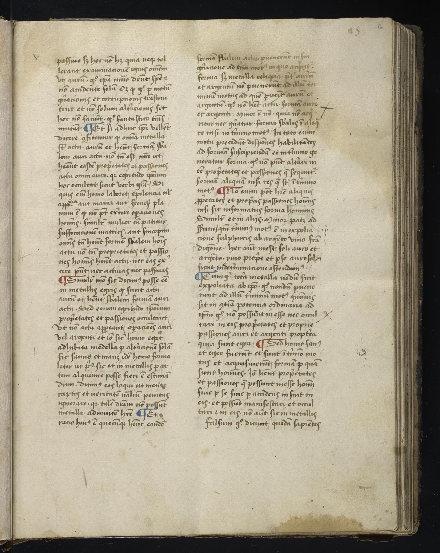 This manuscript contains a copy of a fourteenth-century alchemical treatise discussing the arguments for and against alchemy.