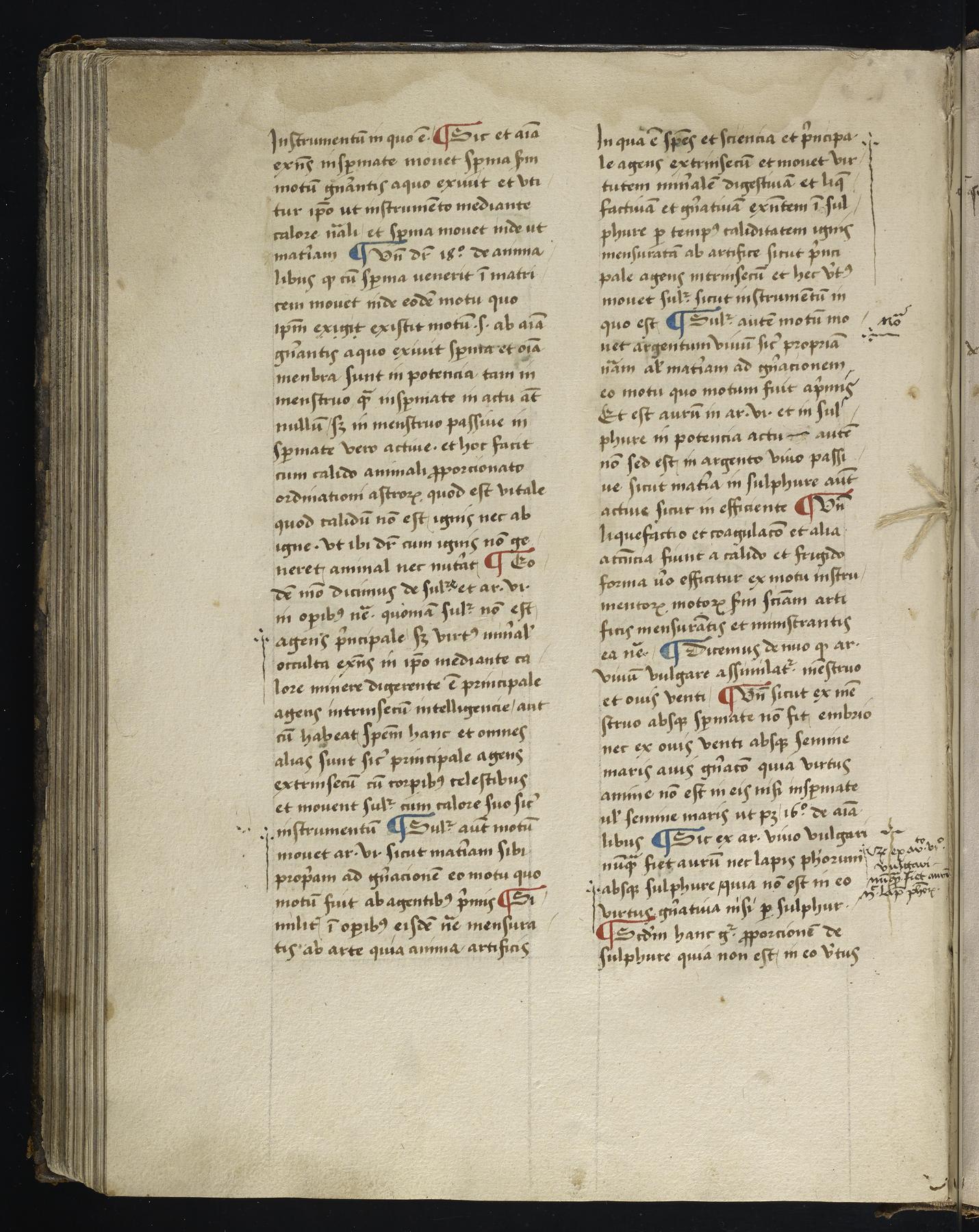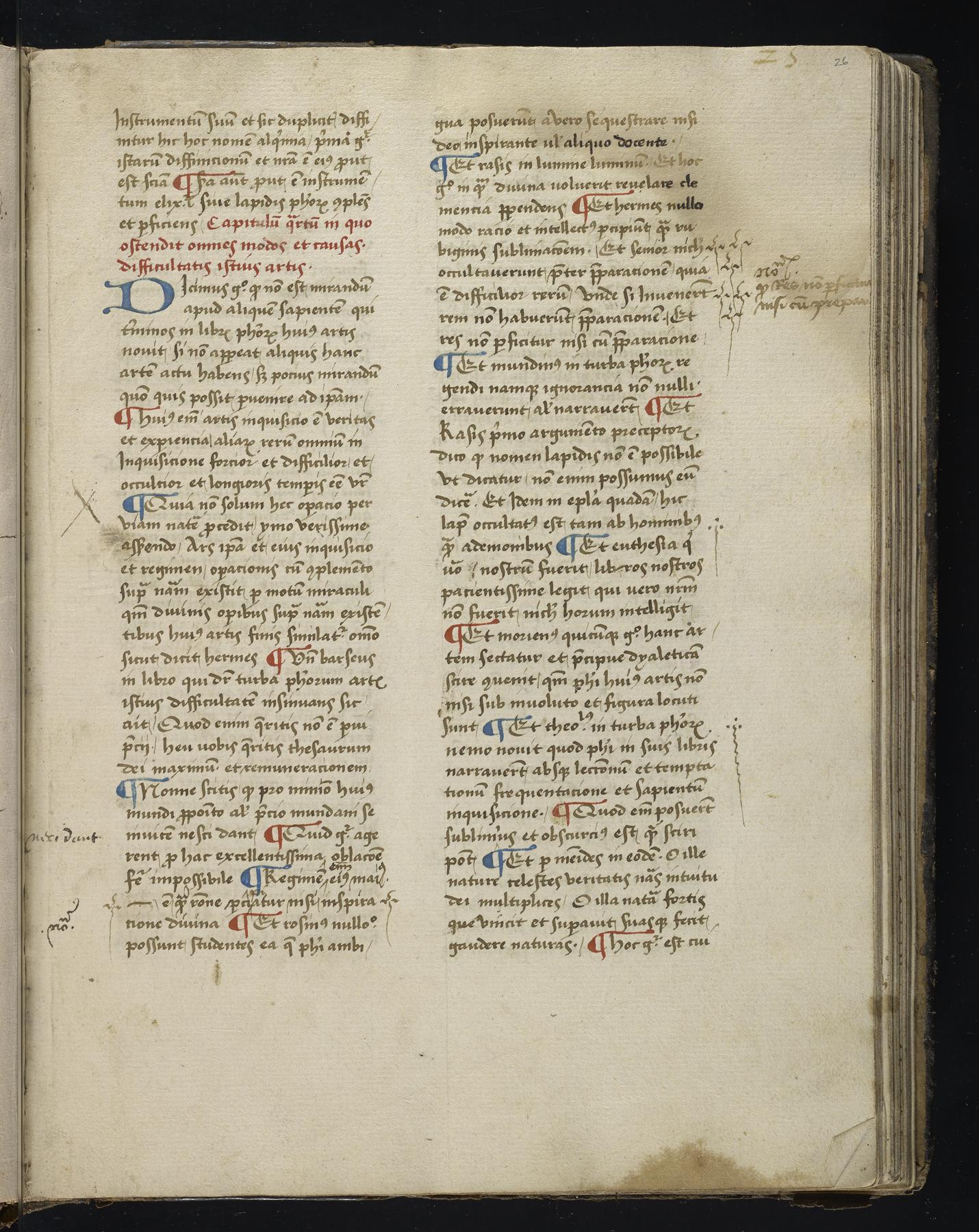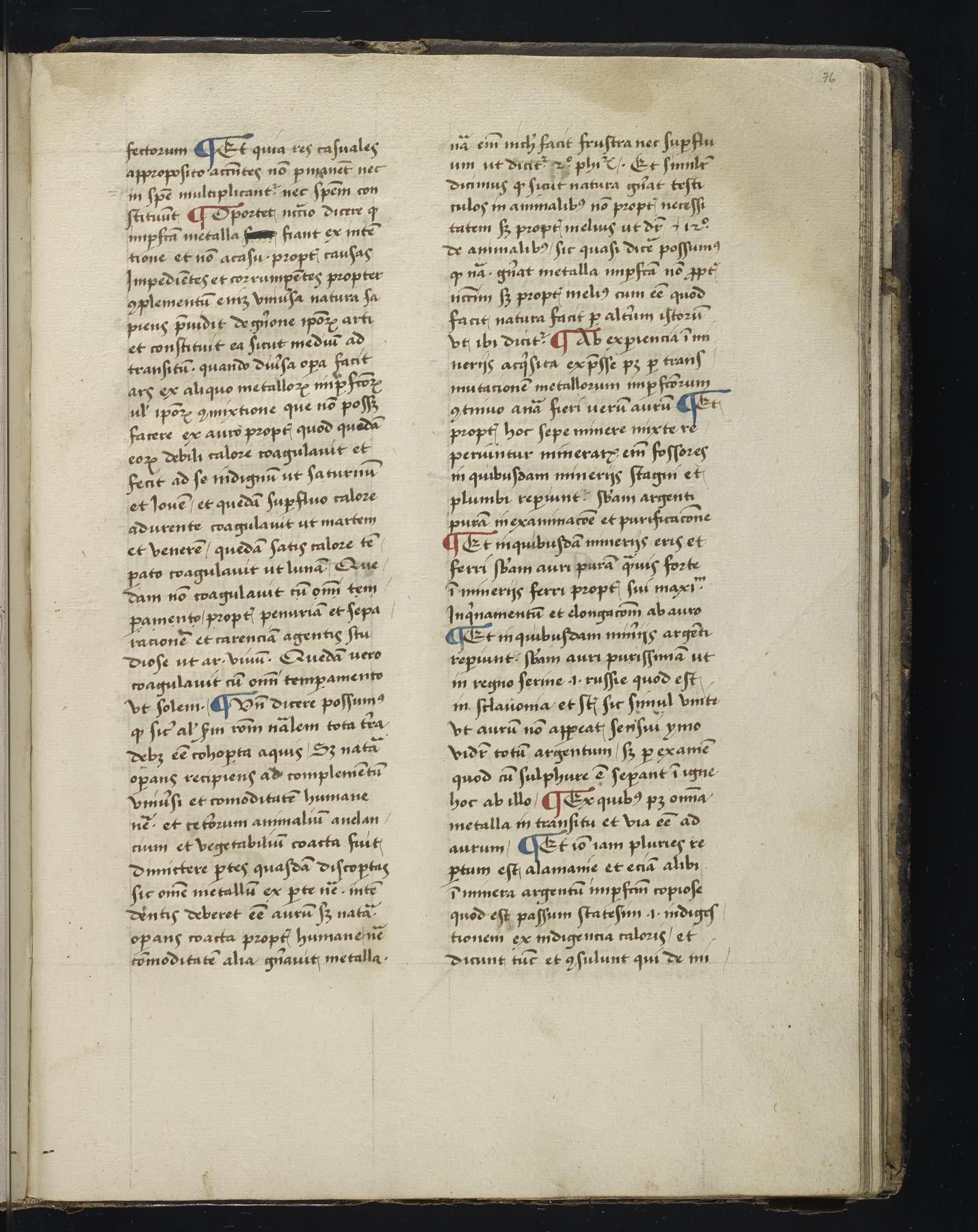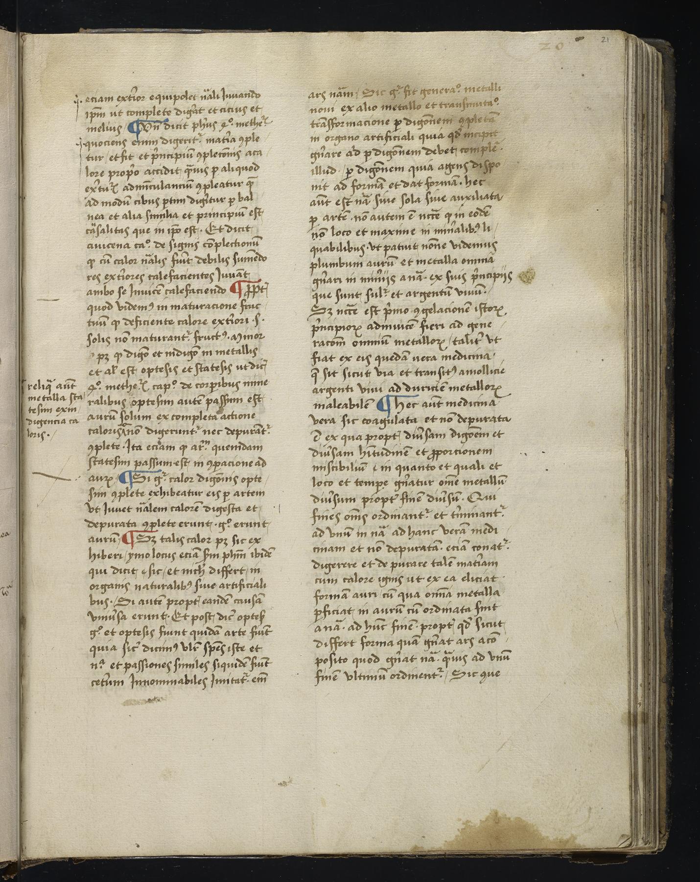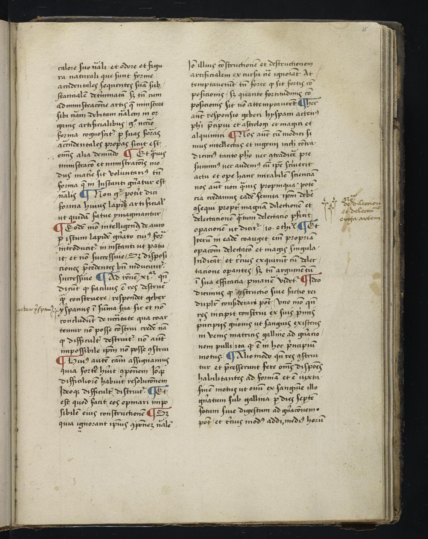 This manuscript contains a copy of a fourteenth-century alchemical treatise discussing the arguments for and against alchemy.