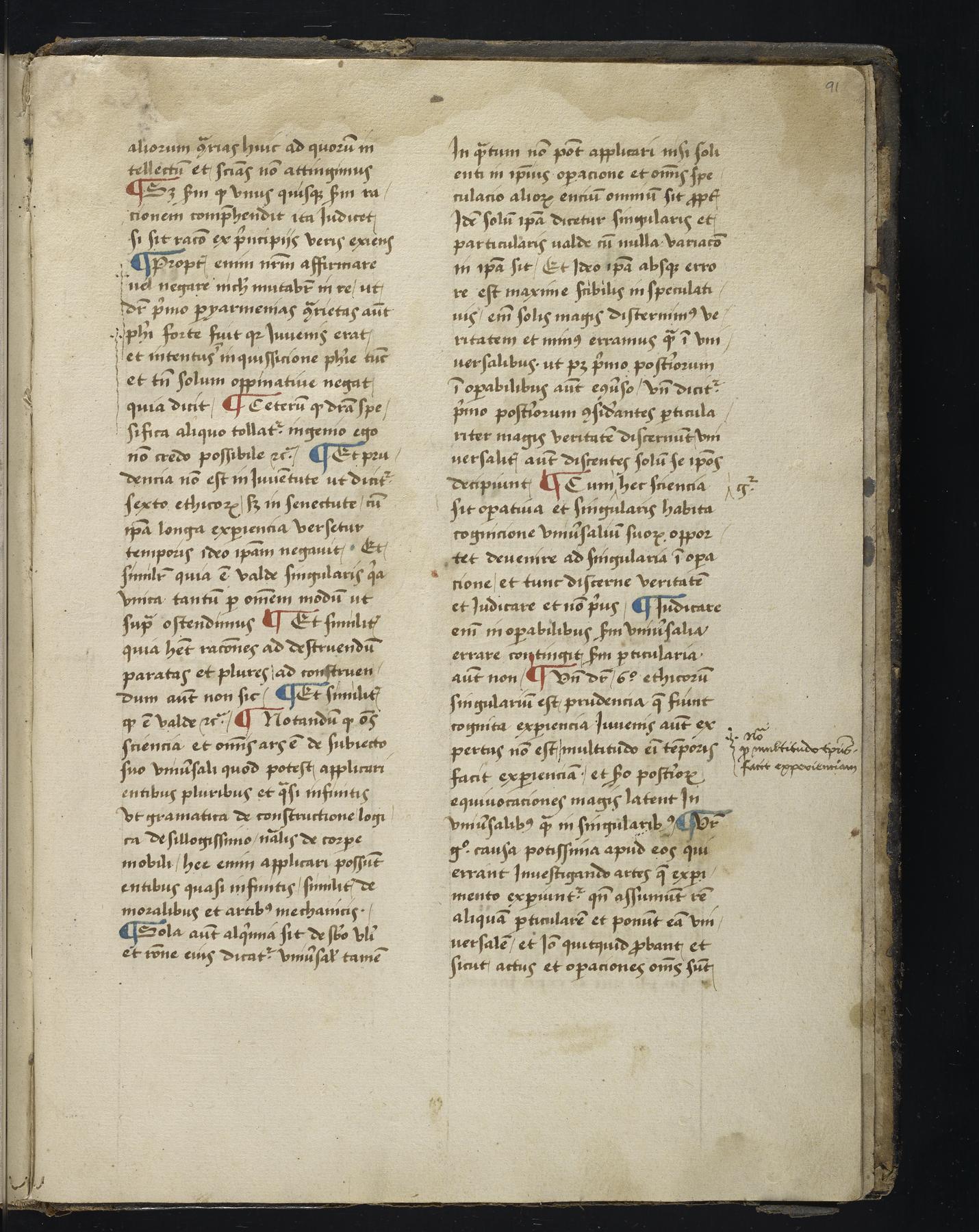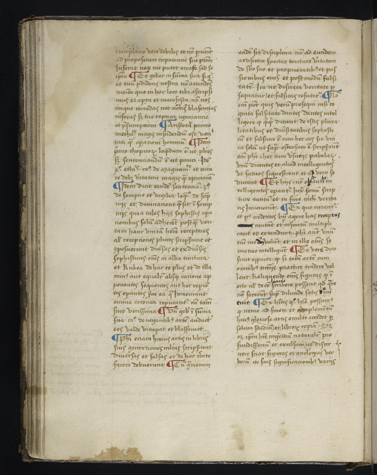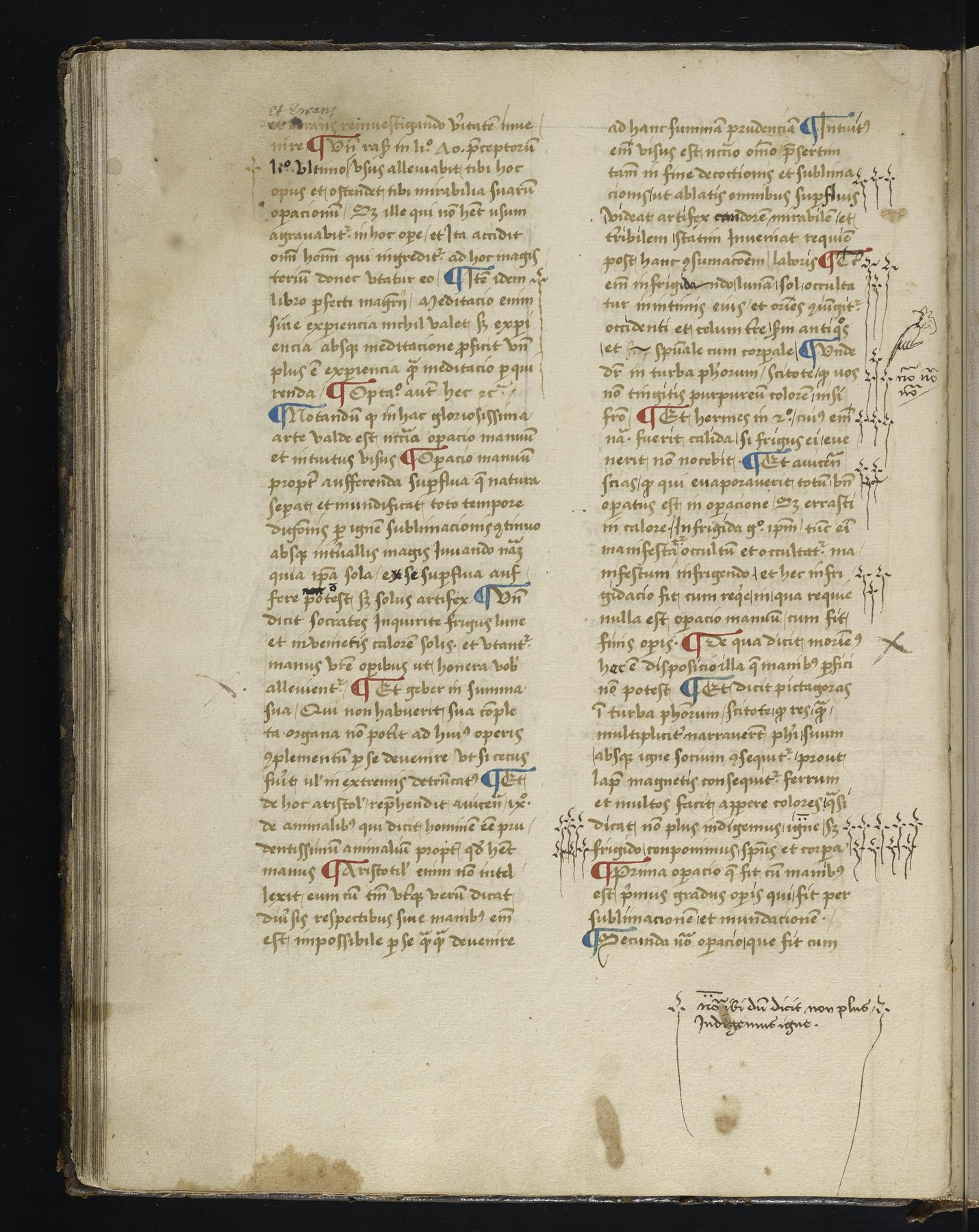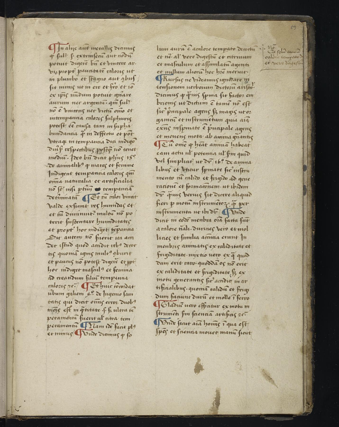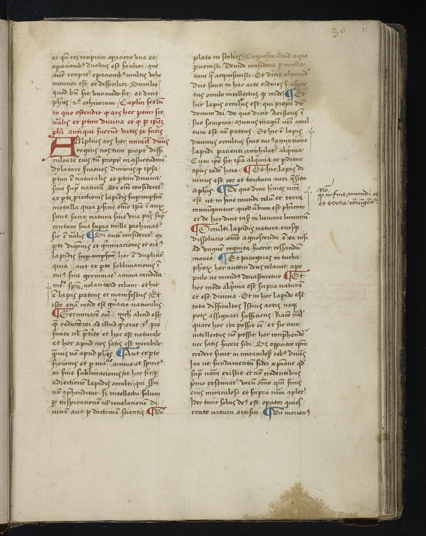 This manuscript contains a copy of a fourteenth-century alchemical treatise discussing the arguments for and against alchemy.