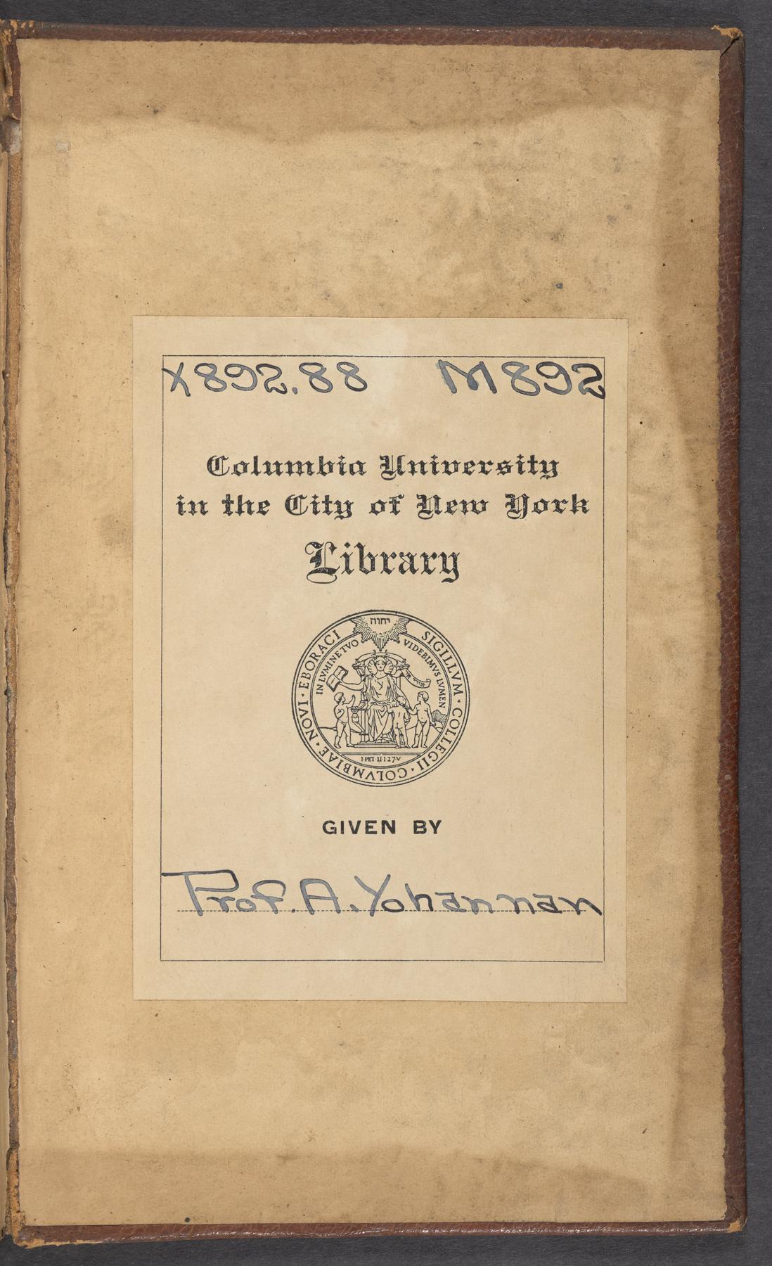 X892.88 M892(New York, NY. 10027, Columbia University, Rare Book and Manuscript Library)