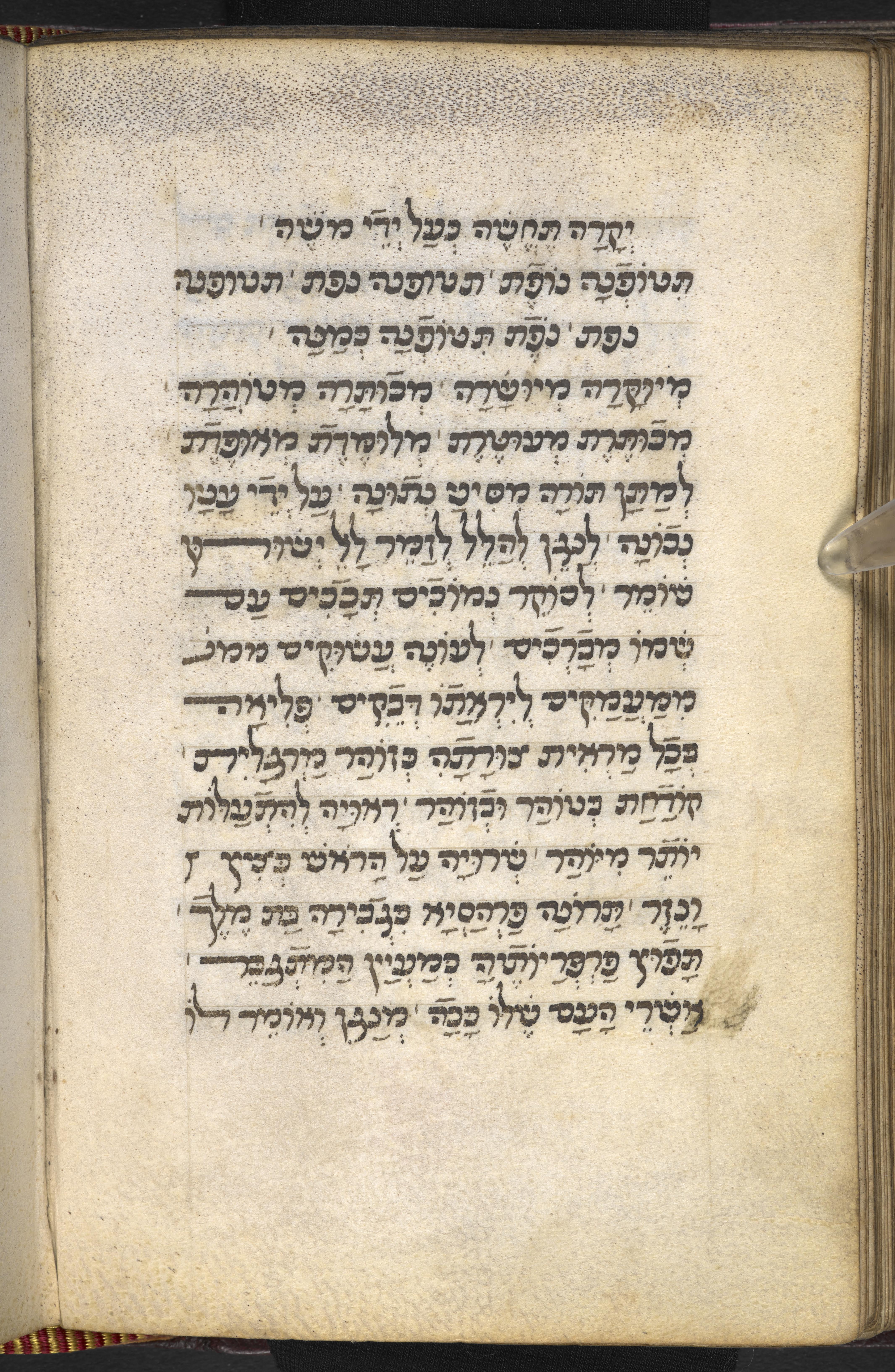 - A note of ownership of the Supino family (Mishpaḥat bet ha-ne῾arim Supino): folio 1v.