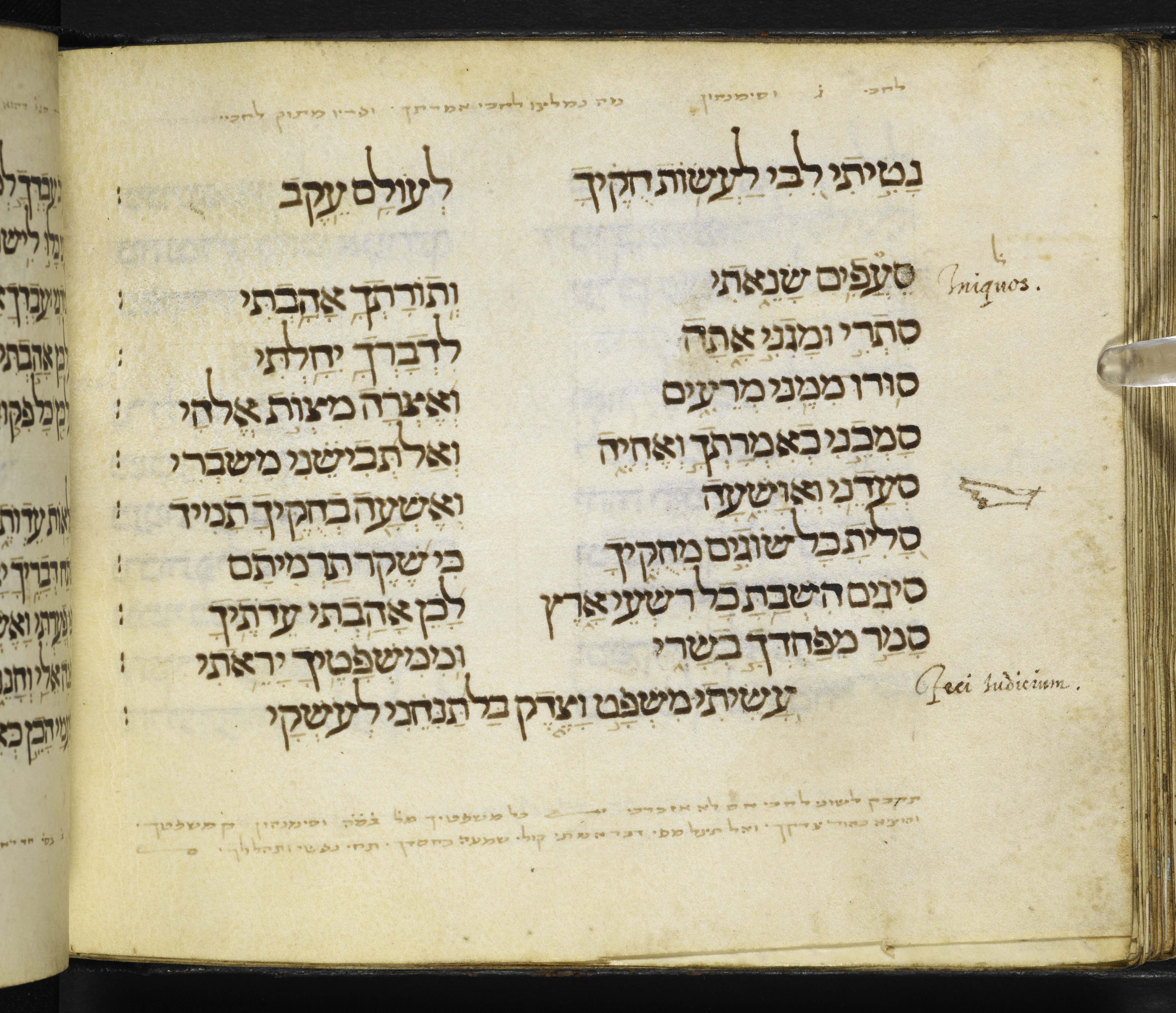BL in-house. Spine: 'Psalterium. Hebrew. British Library. Additional 18830.'Layout