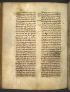 - Two fragments of a Latin manuscript on ecclesiastical law, with decorated initials, serve as flyleaves at the beginning and at the end of the manuscript. Both contain Hebrew annotations with the names of previous owners.
