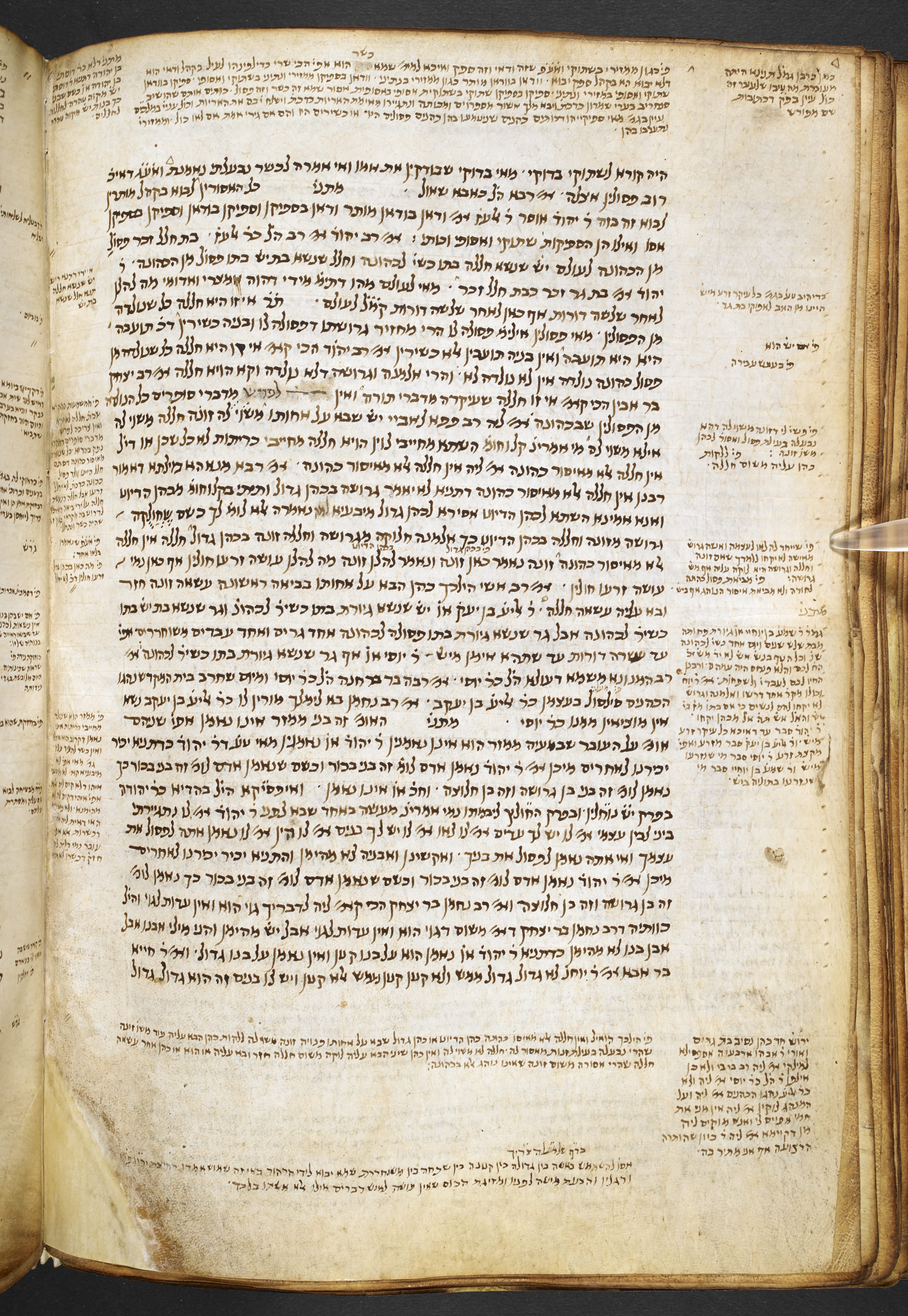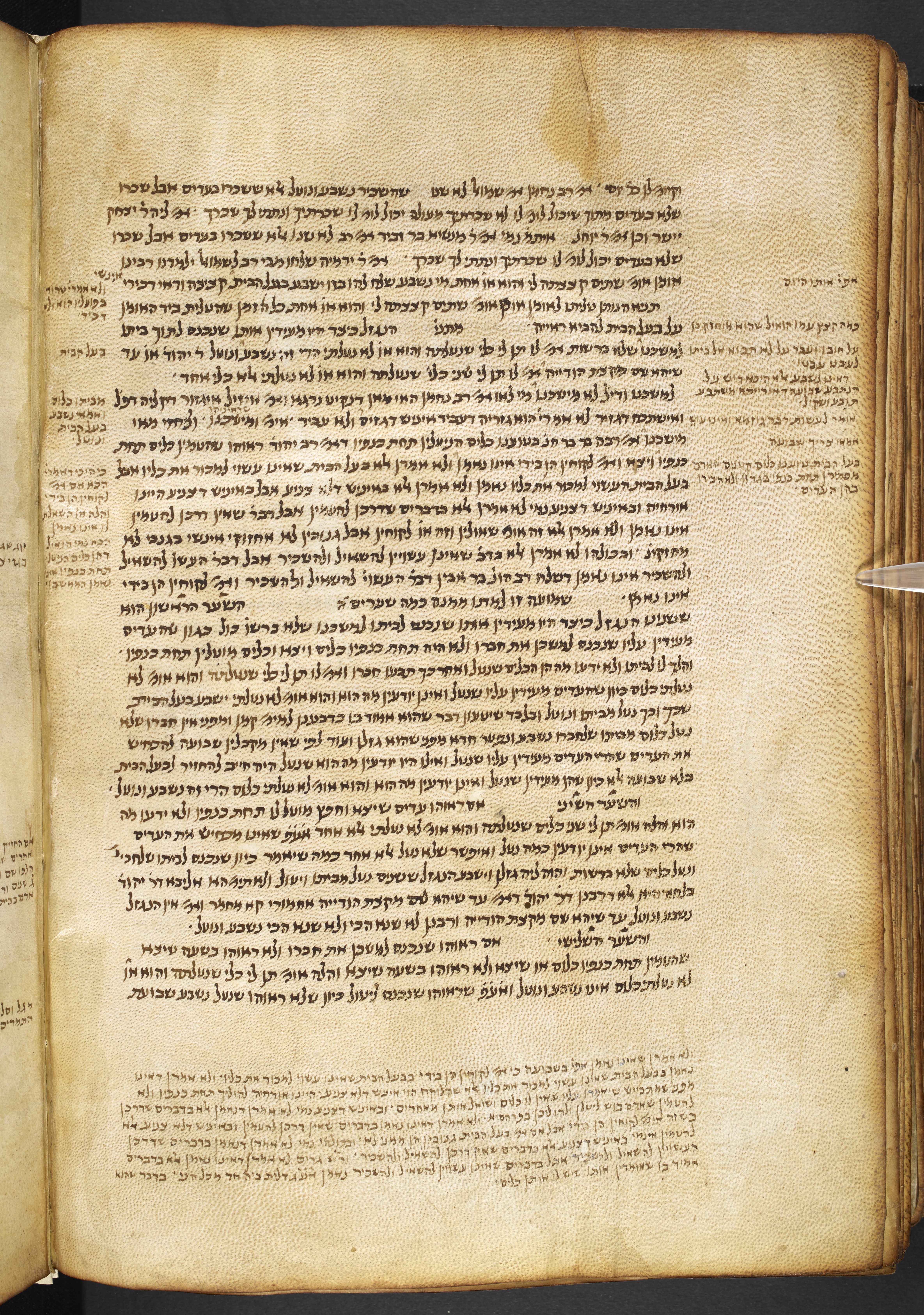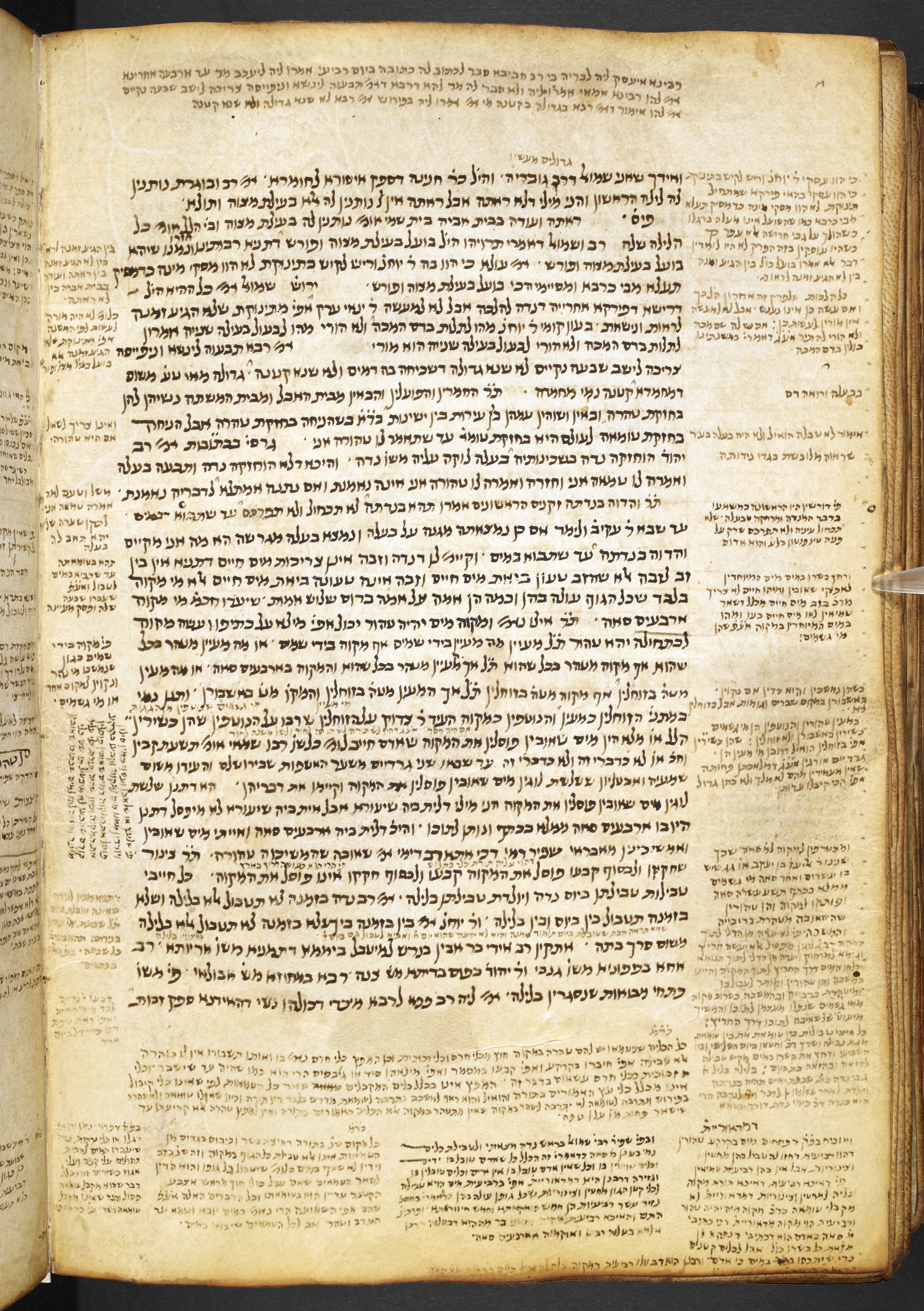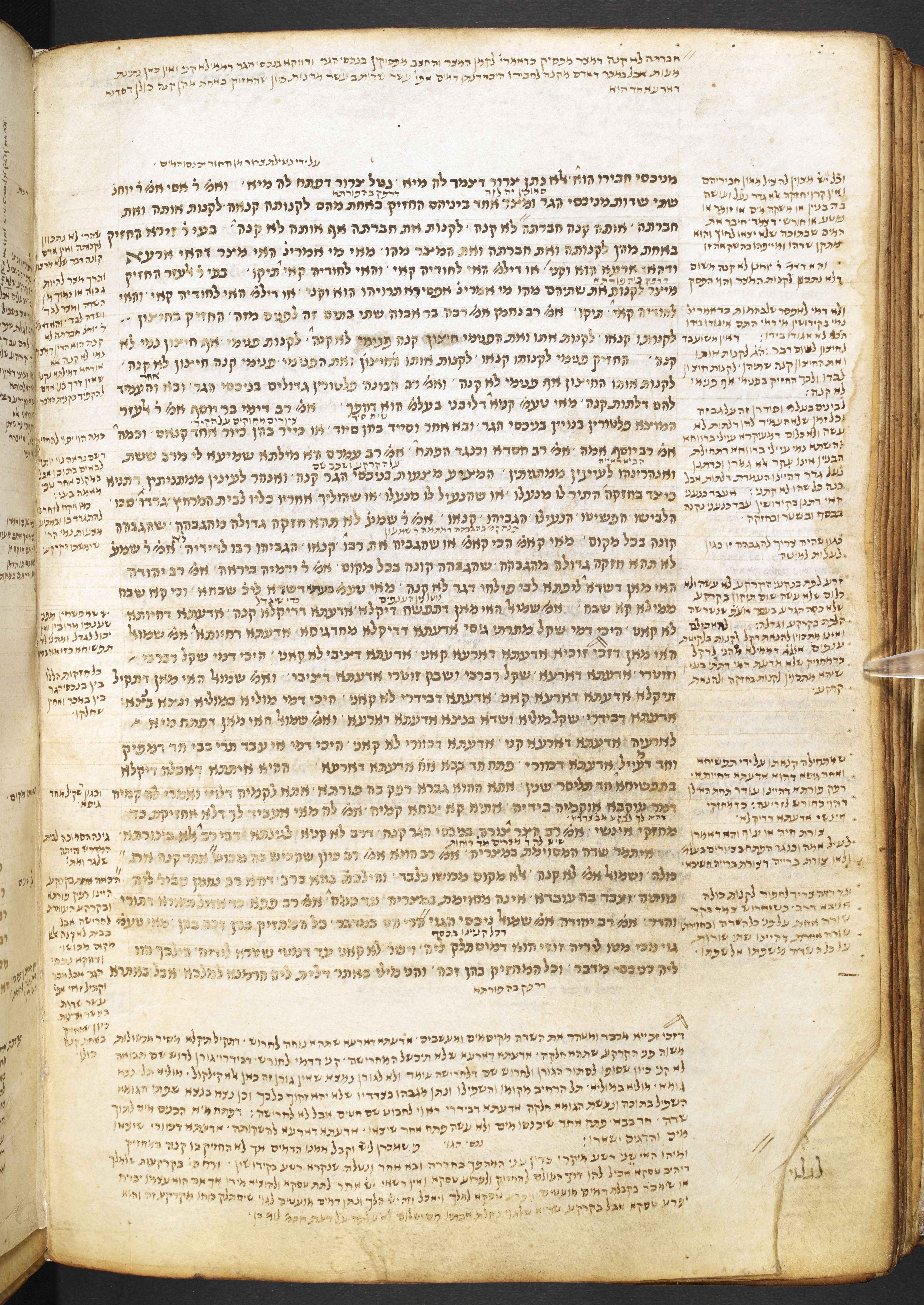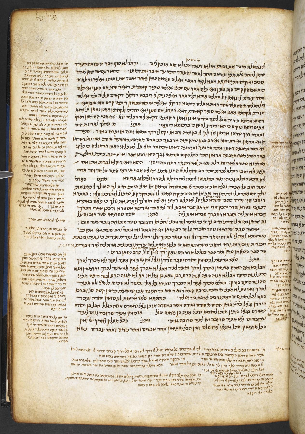 Alfasi's commentary on the treatises of Seder Nashim and Neziḳin, with a marginal commentary mostly taken from Rashi and with references to other sources.