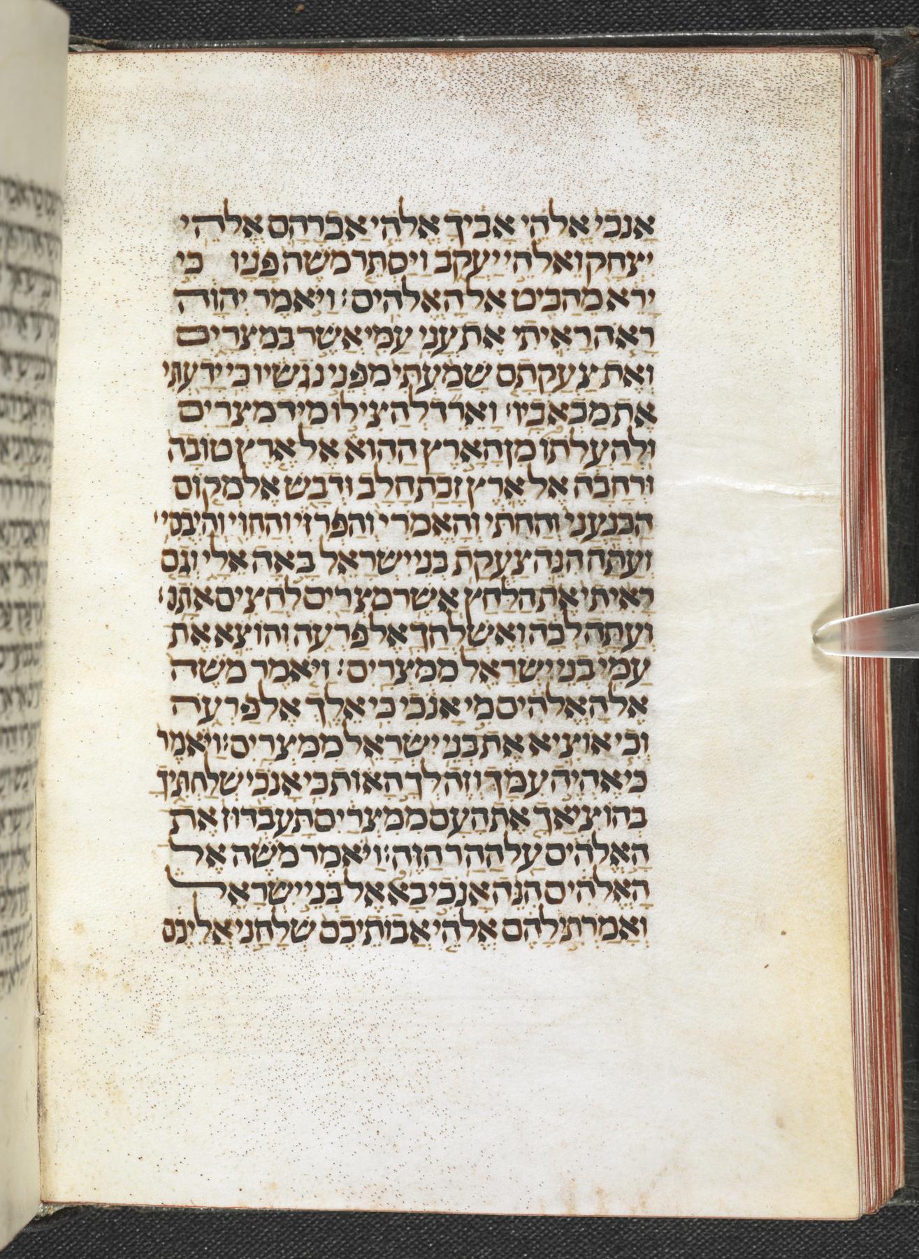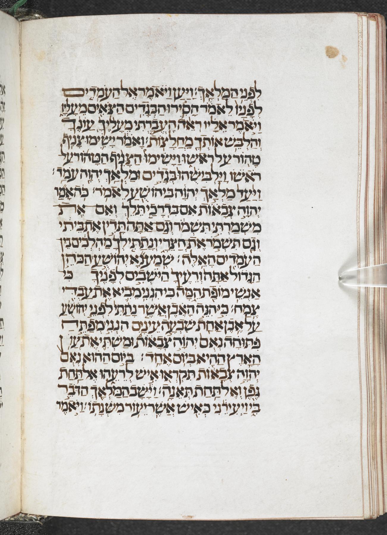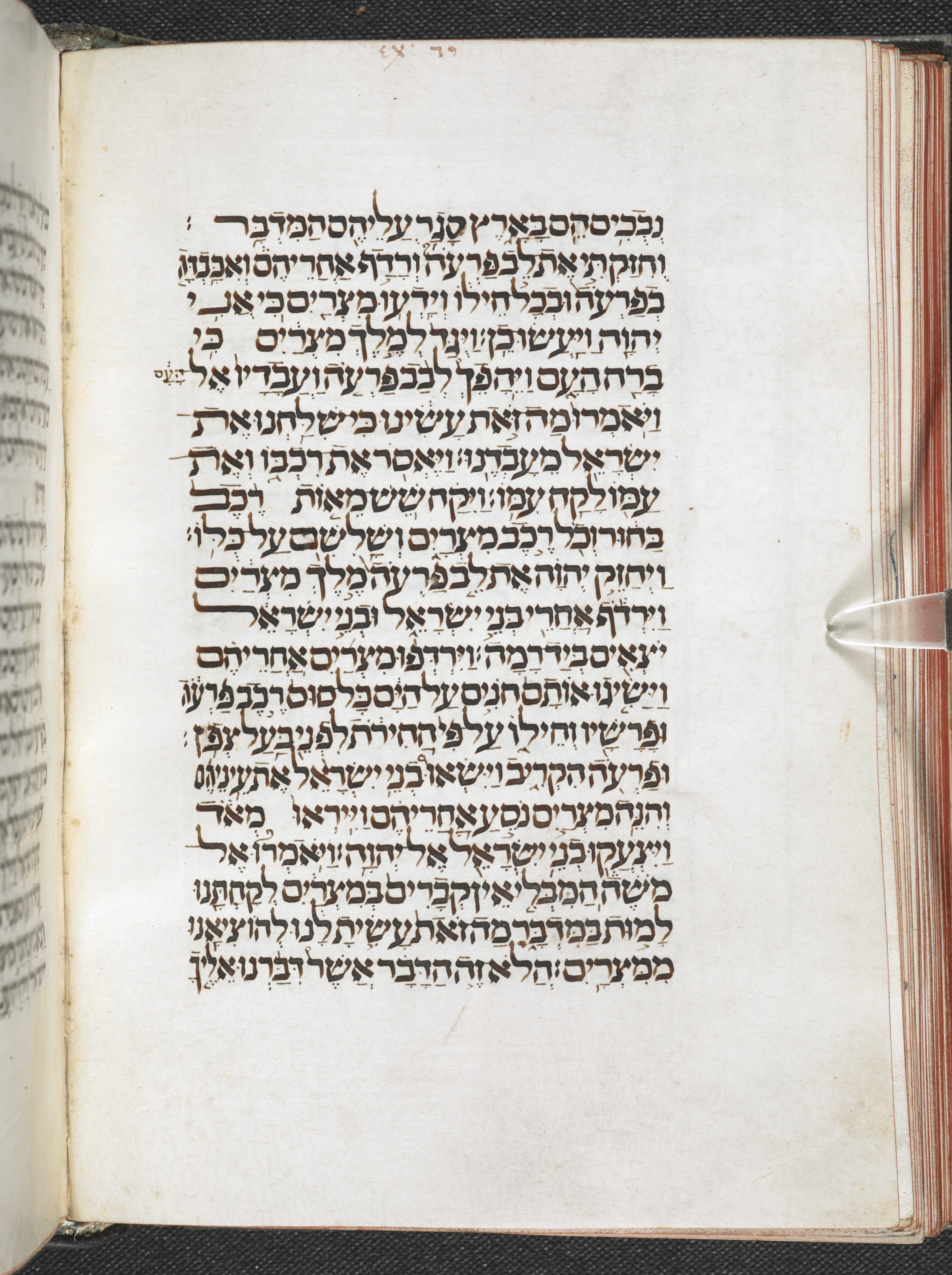 Post-1660. Dark green leather binding, tooled in gold, centrepiece. Spine: 'The Pentateuch, Hafṭaroth, and Five Megilloth. Hebrew. Brit. Mus. Additional 27, 167.'Layout