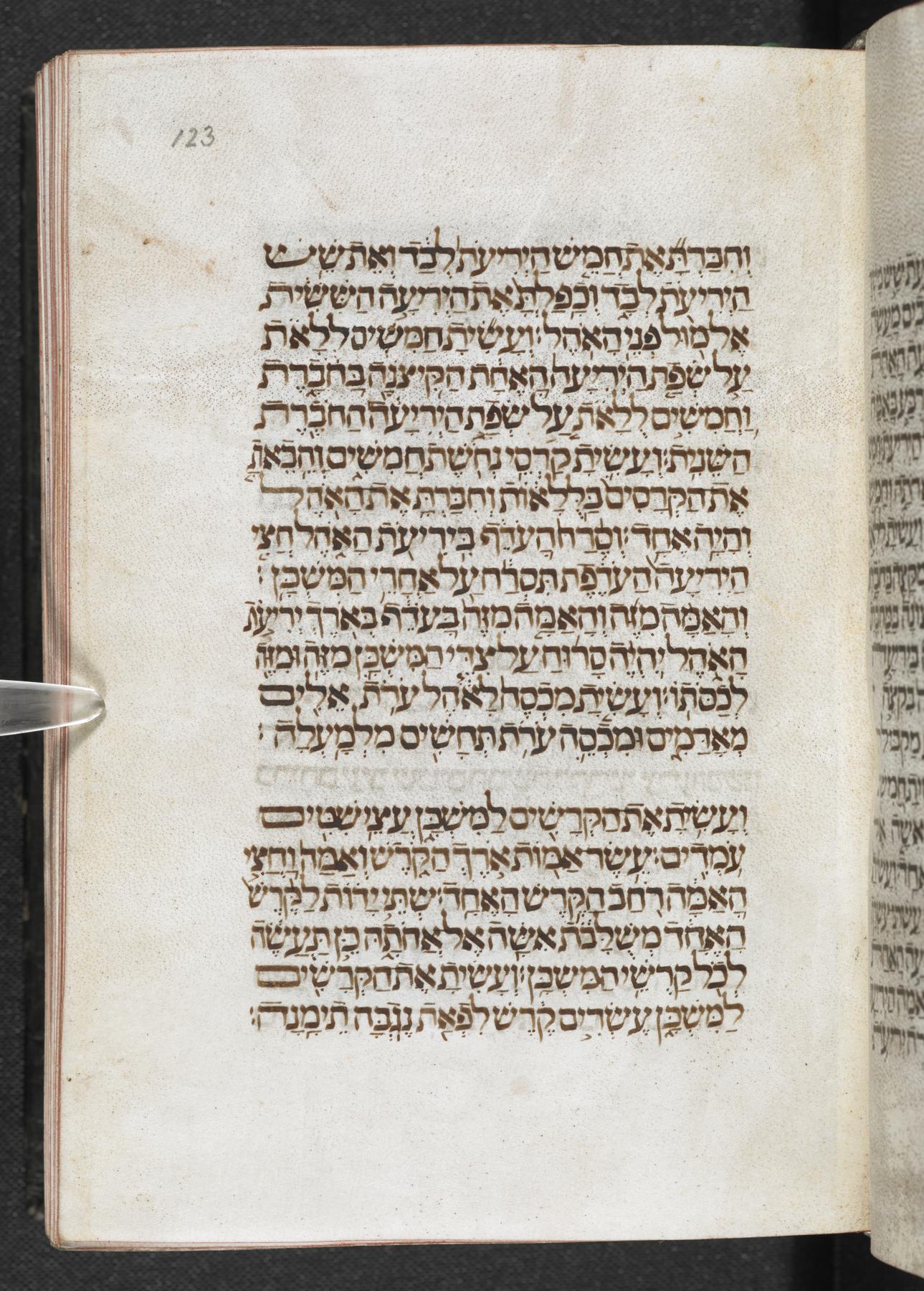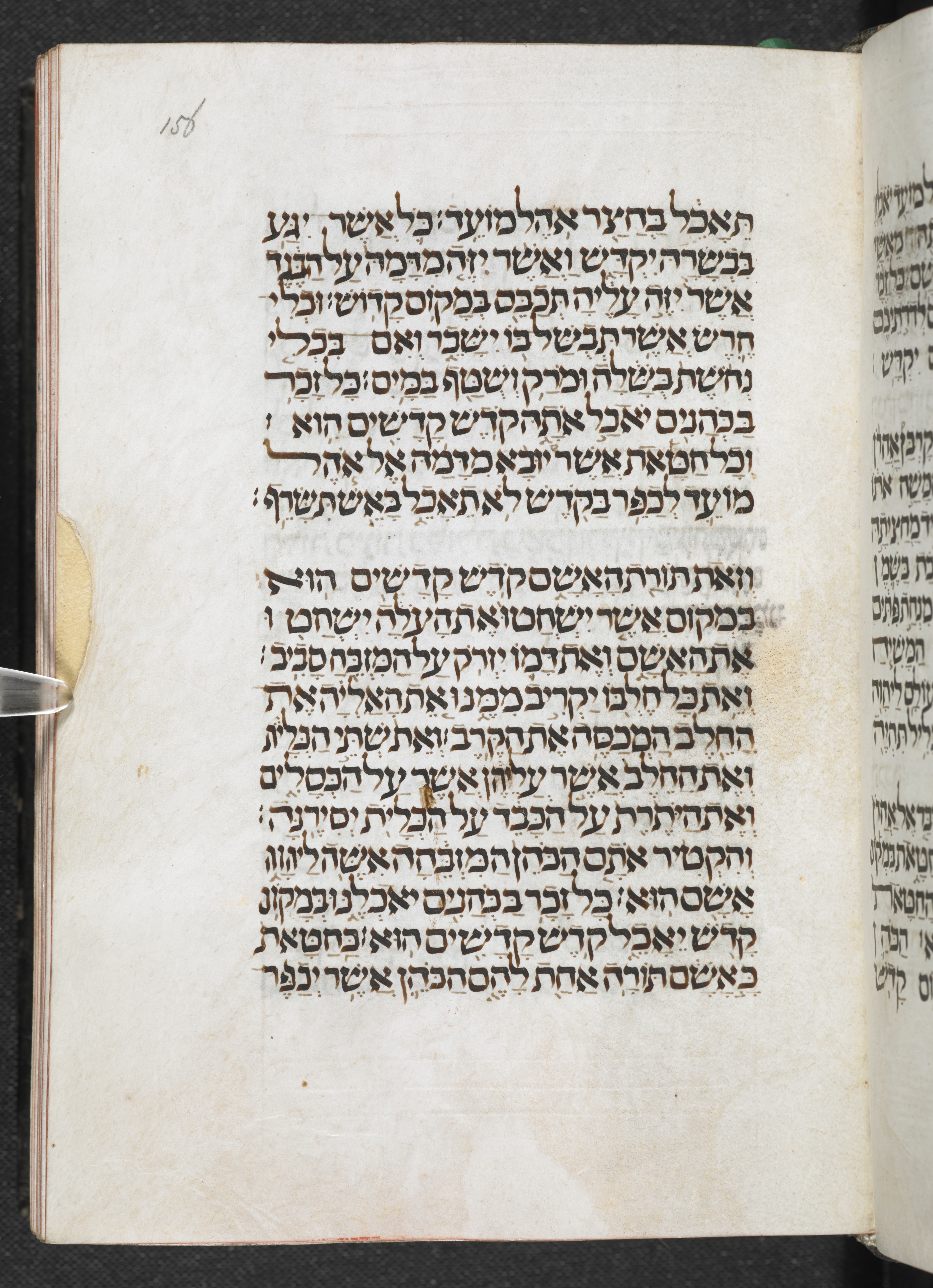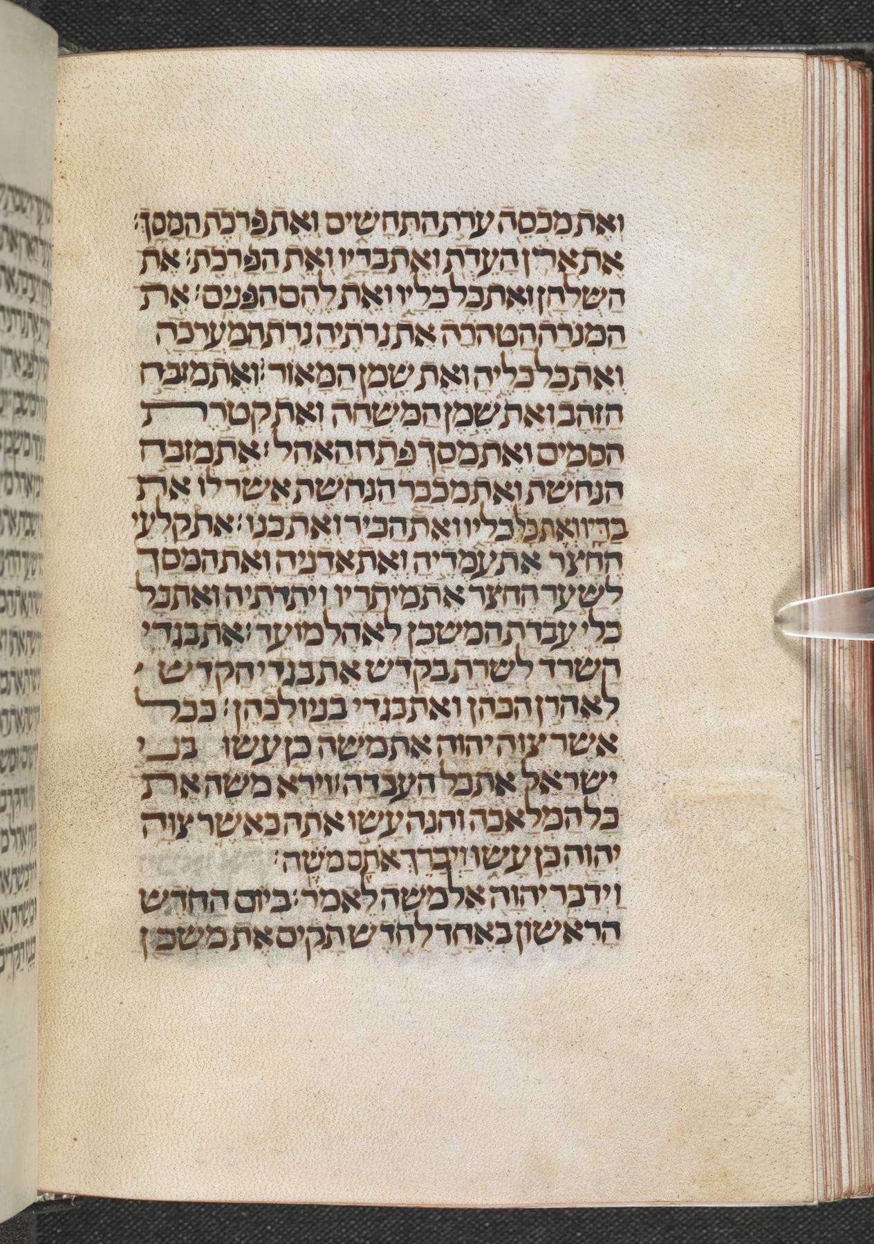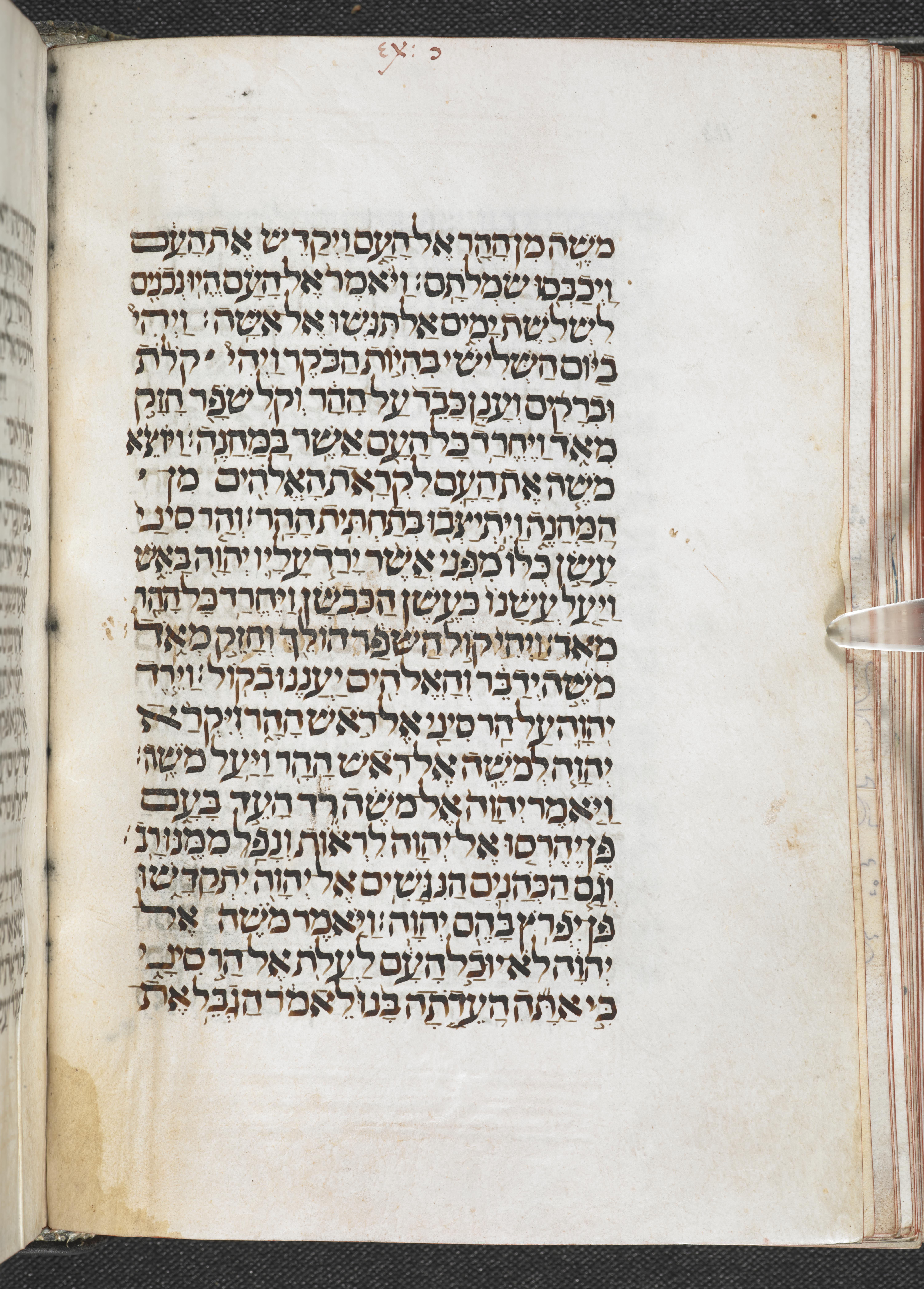 Post-1660. Dark green leather binding, tooled in gold, centrepiece. Spine: 'The Pentateuch, Hafṭaroth, and Five Megilloth. Hebrew. Brit. Mus. Additional 27, 167.'Layout