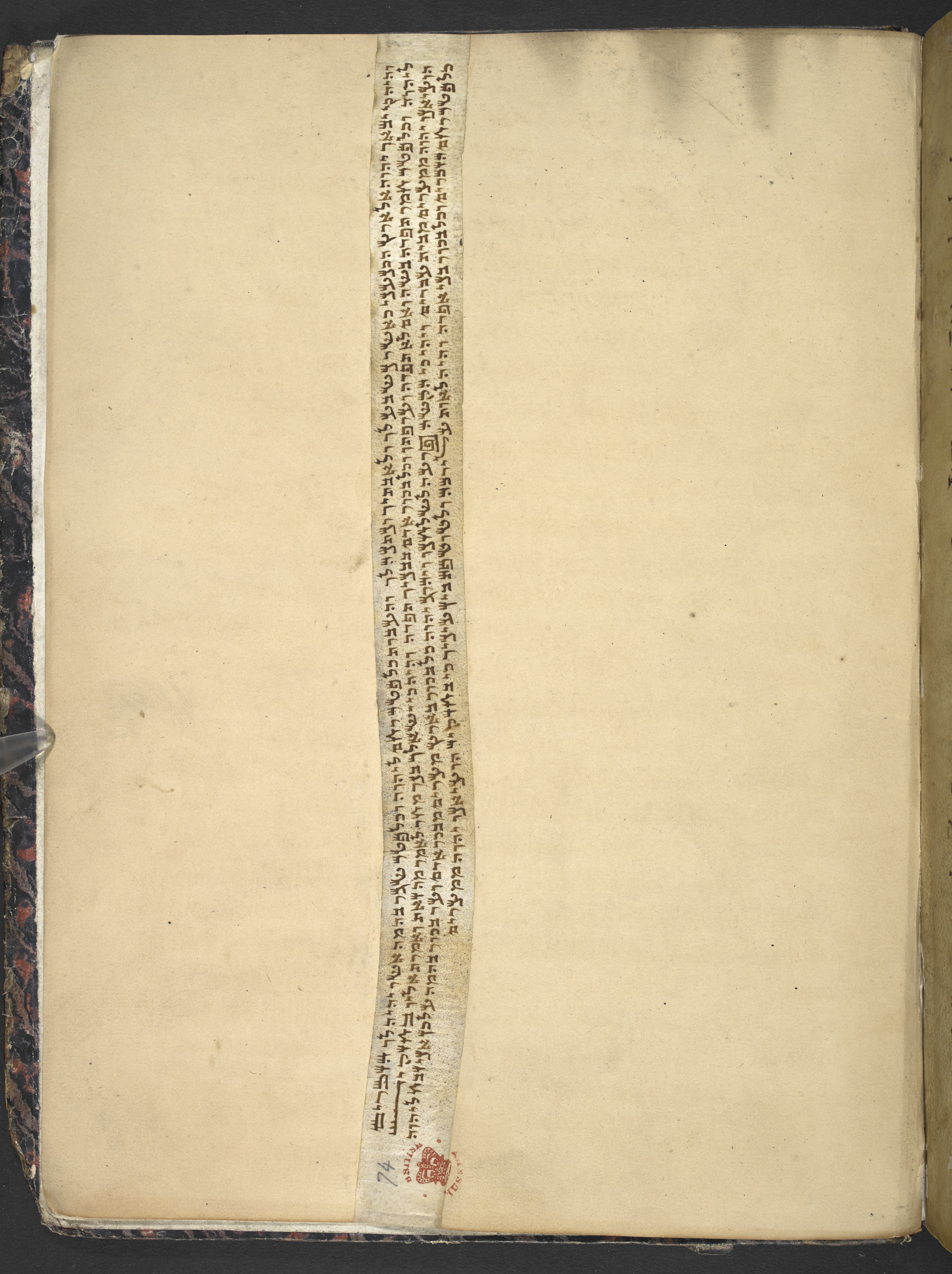 - Folio [74] (a flyleaf) contains a part of Tefilin shel rosh.