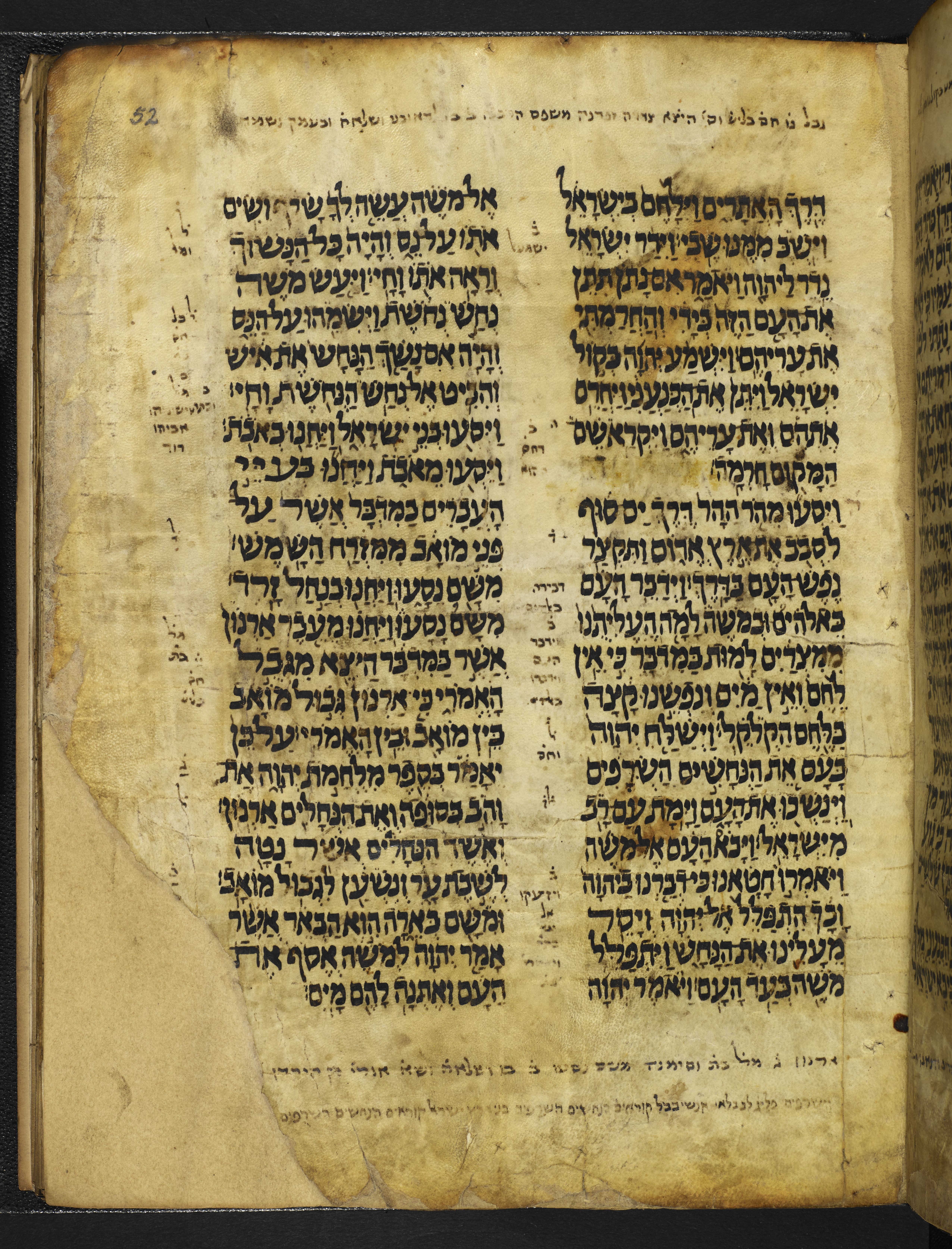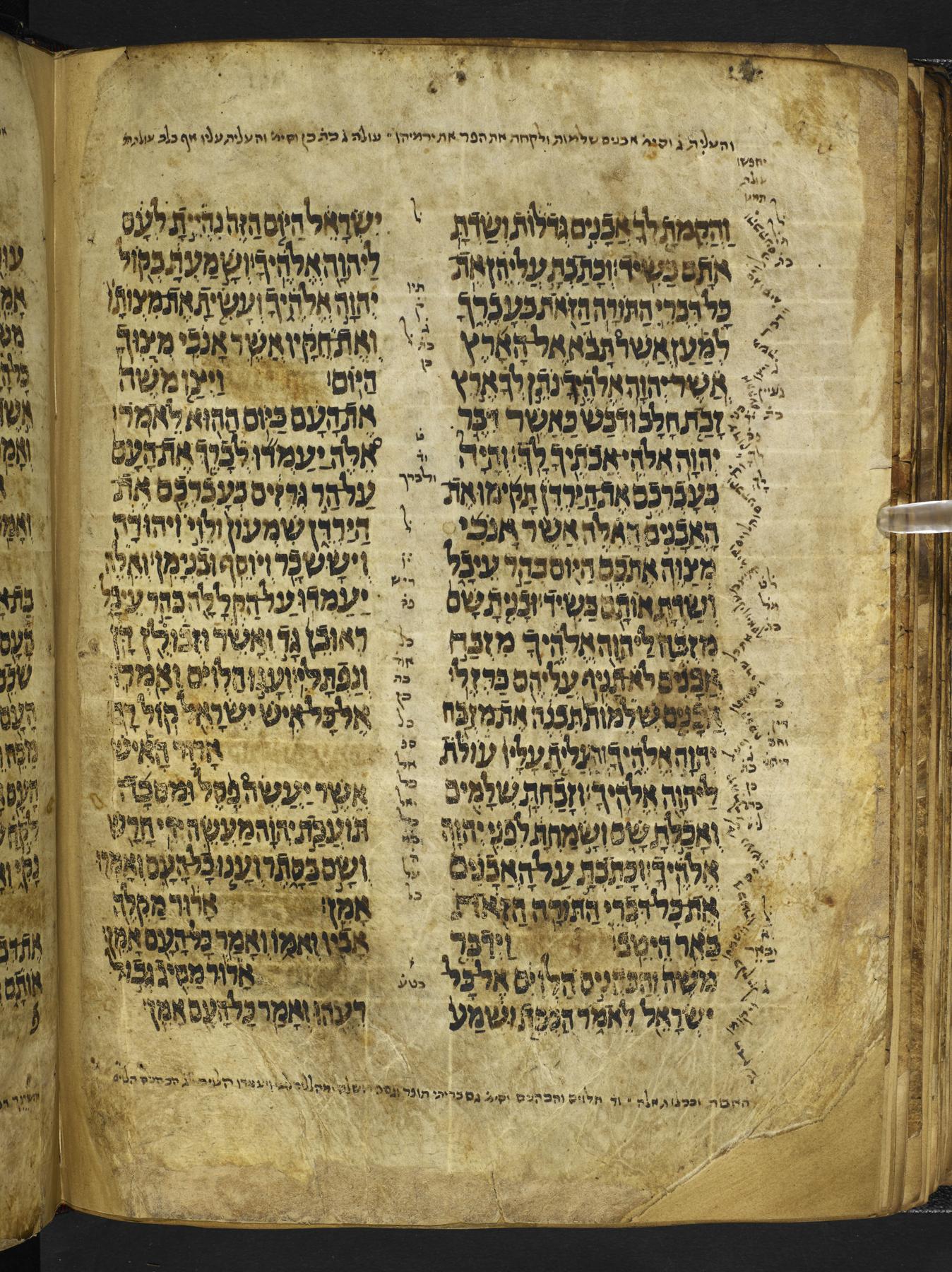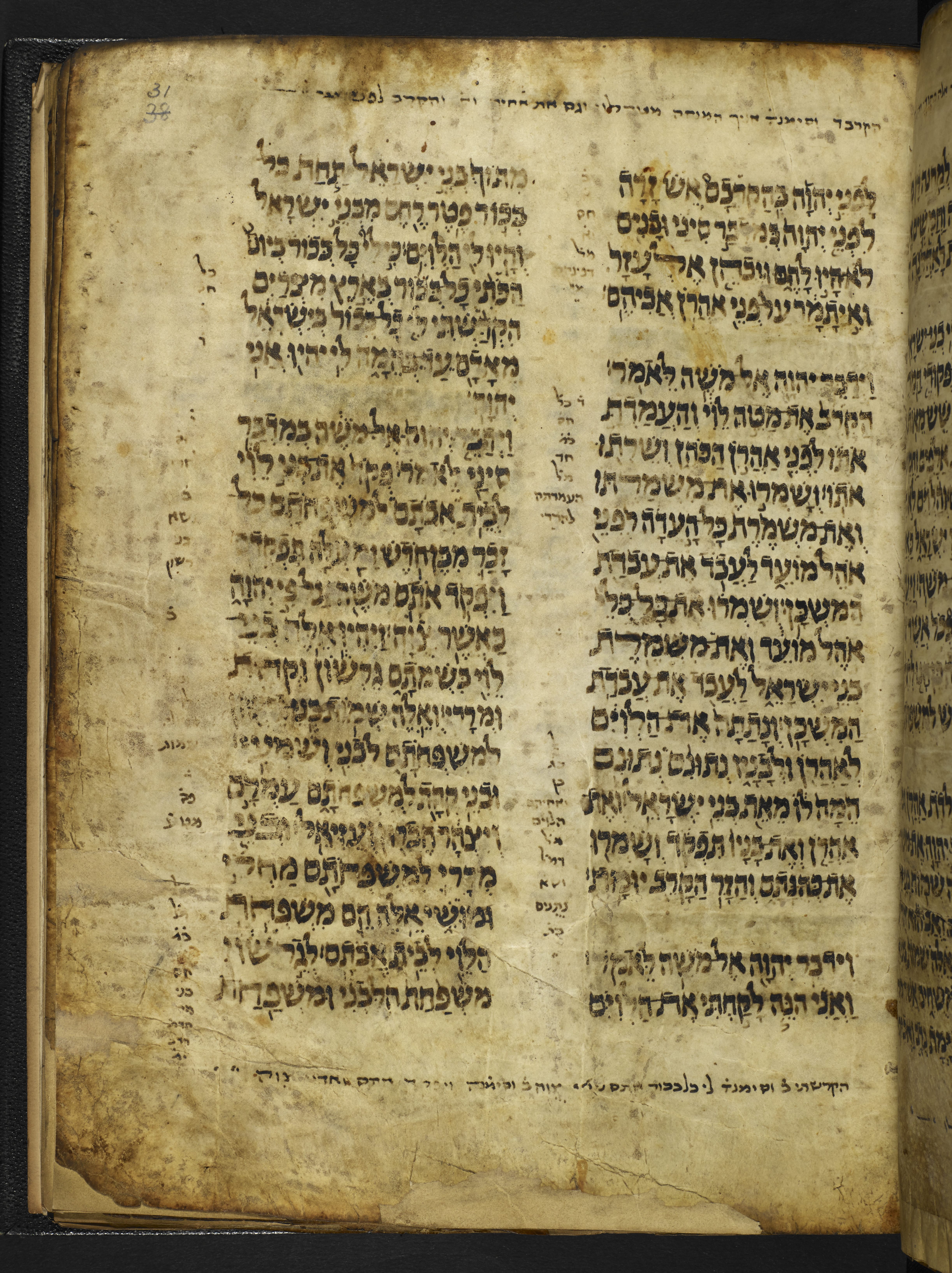A large fragment of the Pentateuch, punctuated and accentuated, with masorah magna and parva.