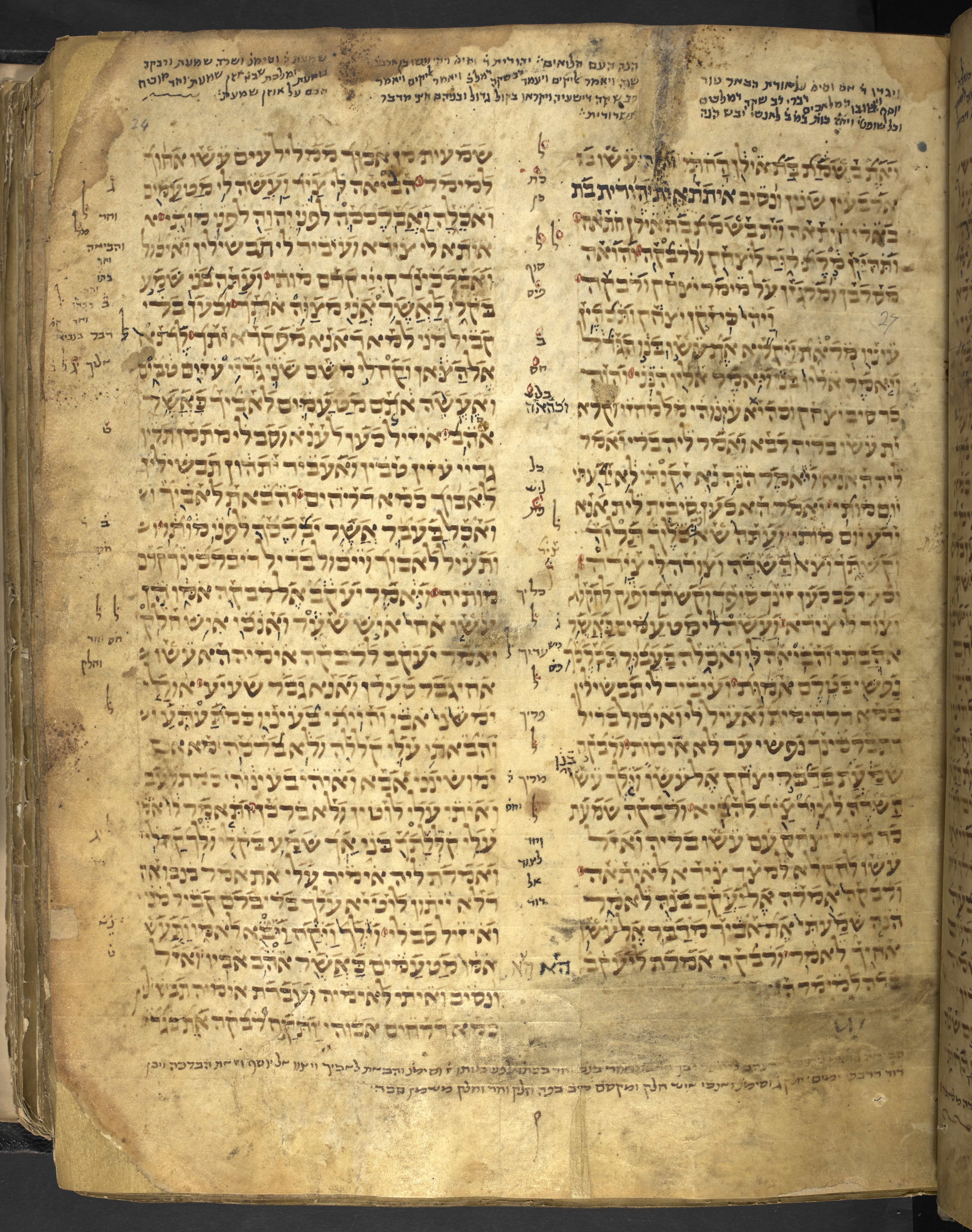 Pentateuch with Targum Onḳelos and masorah magna and parva.