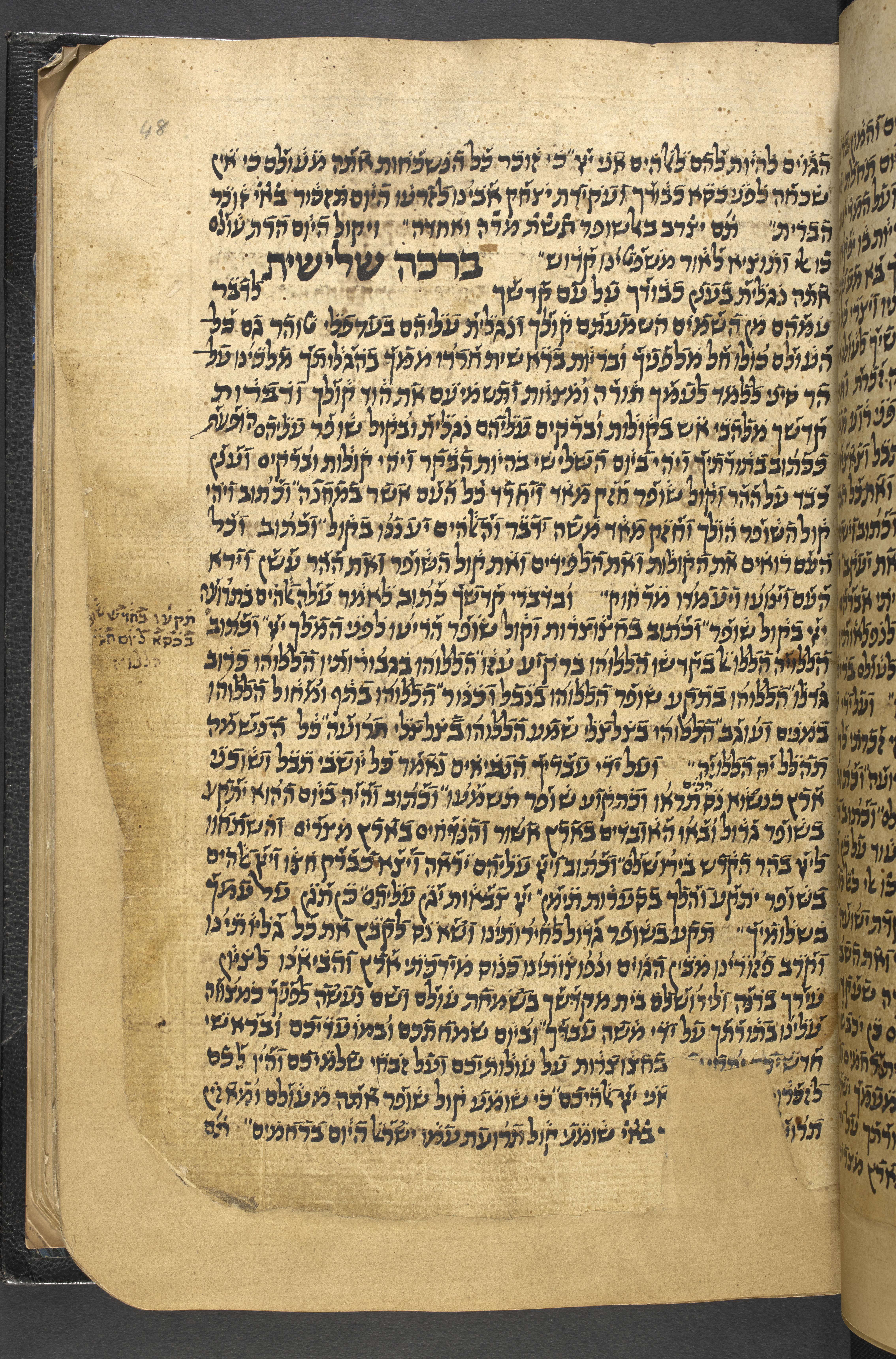 - Folio 1r: a note of a former owner, Yosef Ben Shalom ben Yesha῾, written over an erasure originally occupied by another name.
