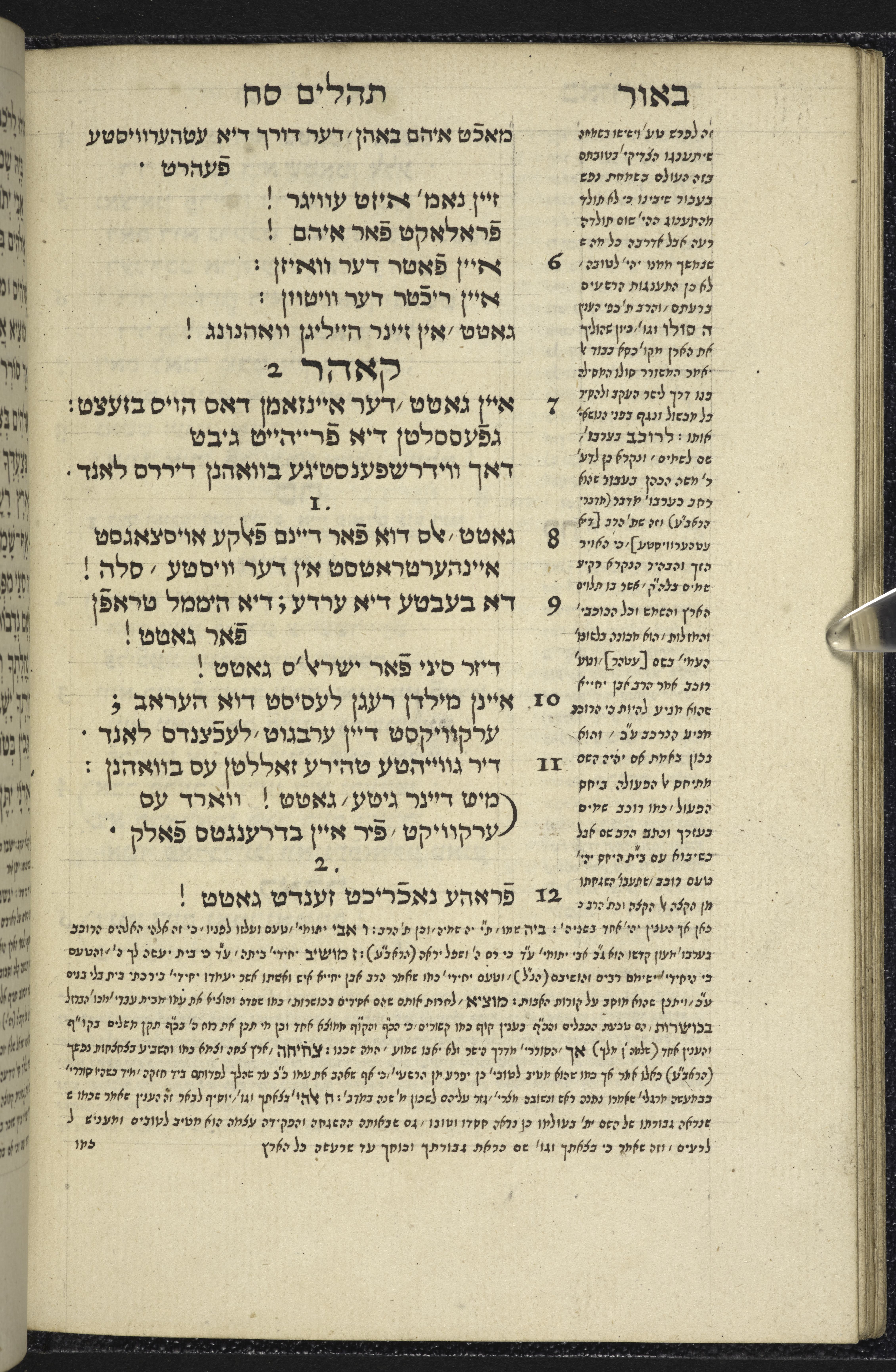 Psalms 42-72 accompanied by the German version of Moses Mendelssohn and the commentaries of Obadiah ben Jacob Sforno and Judah Lowe.Funders