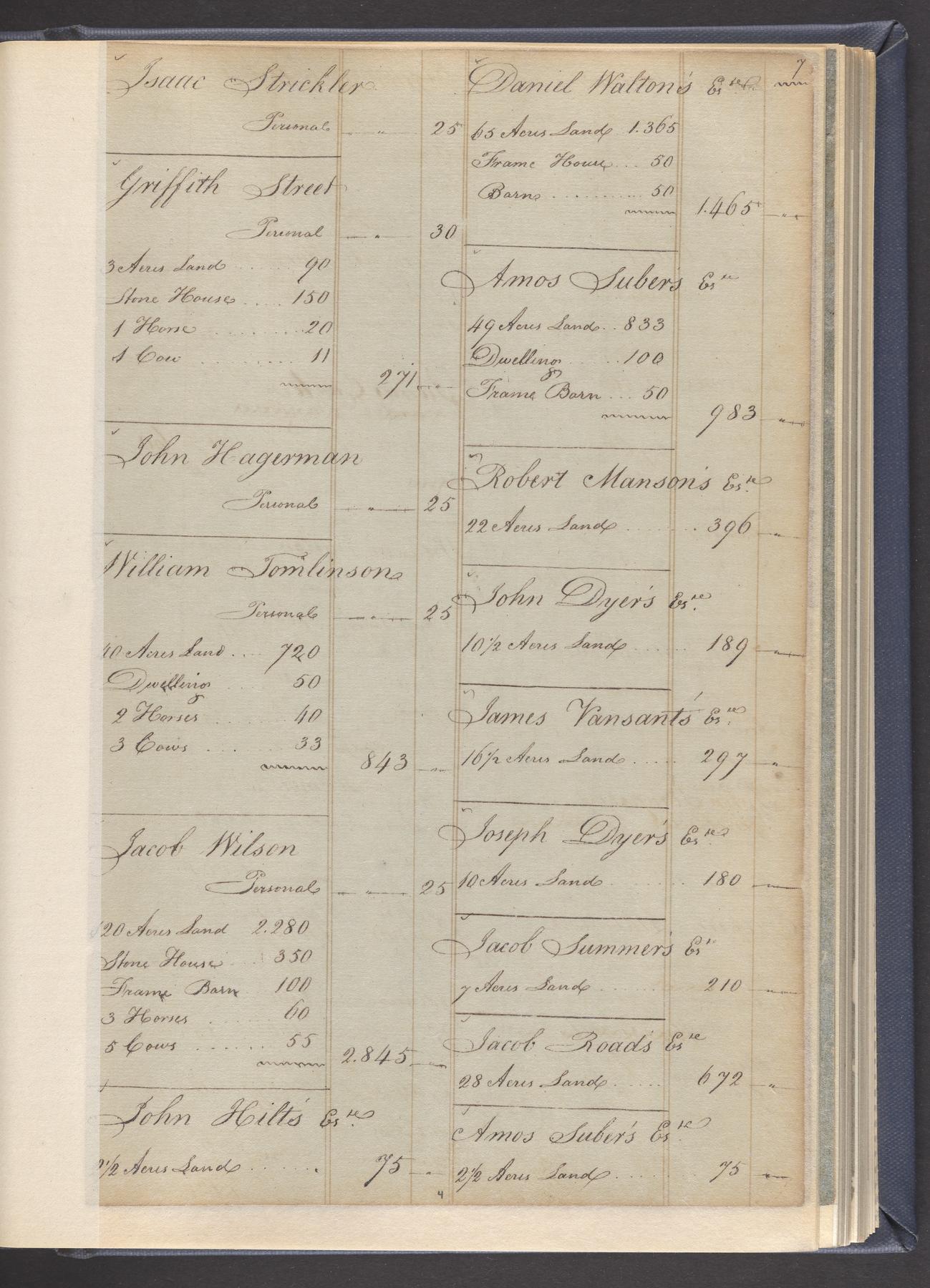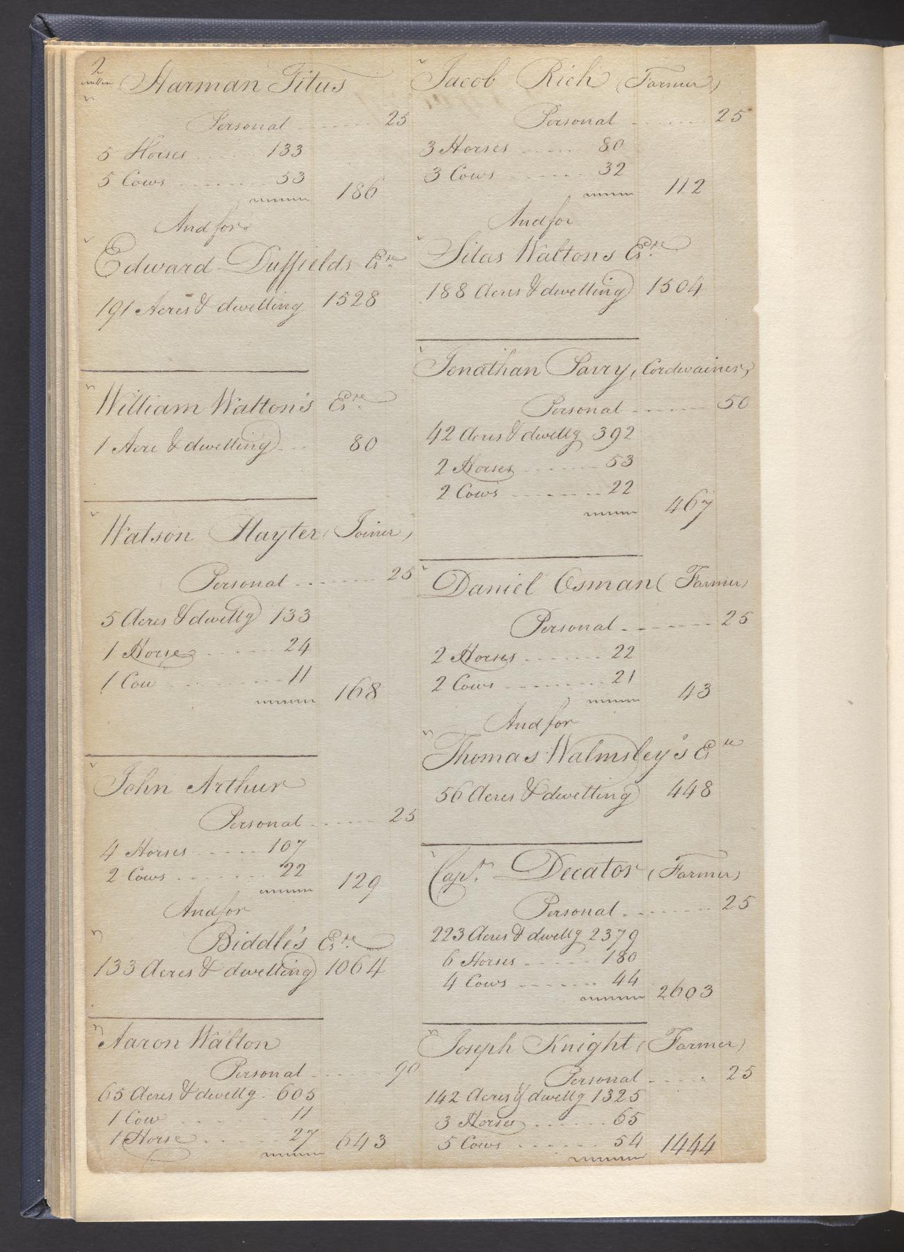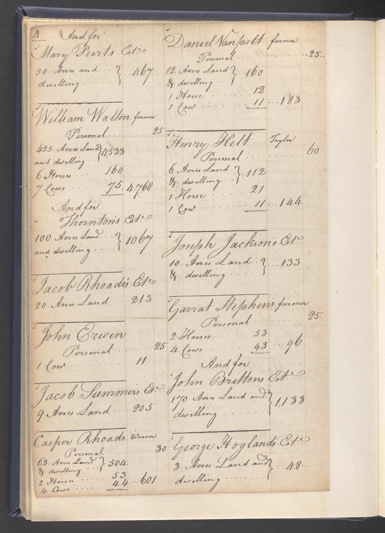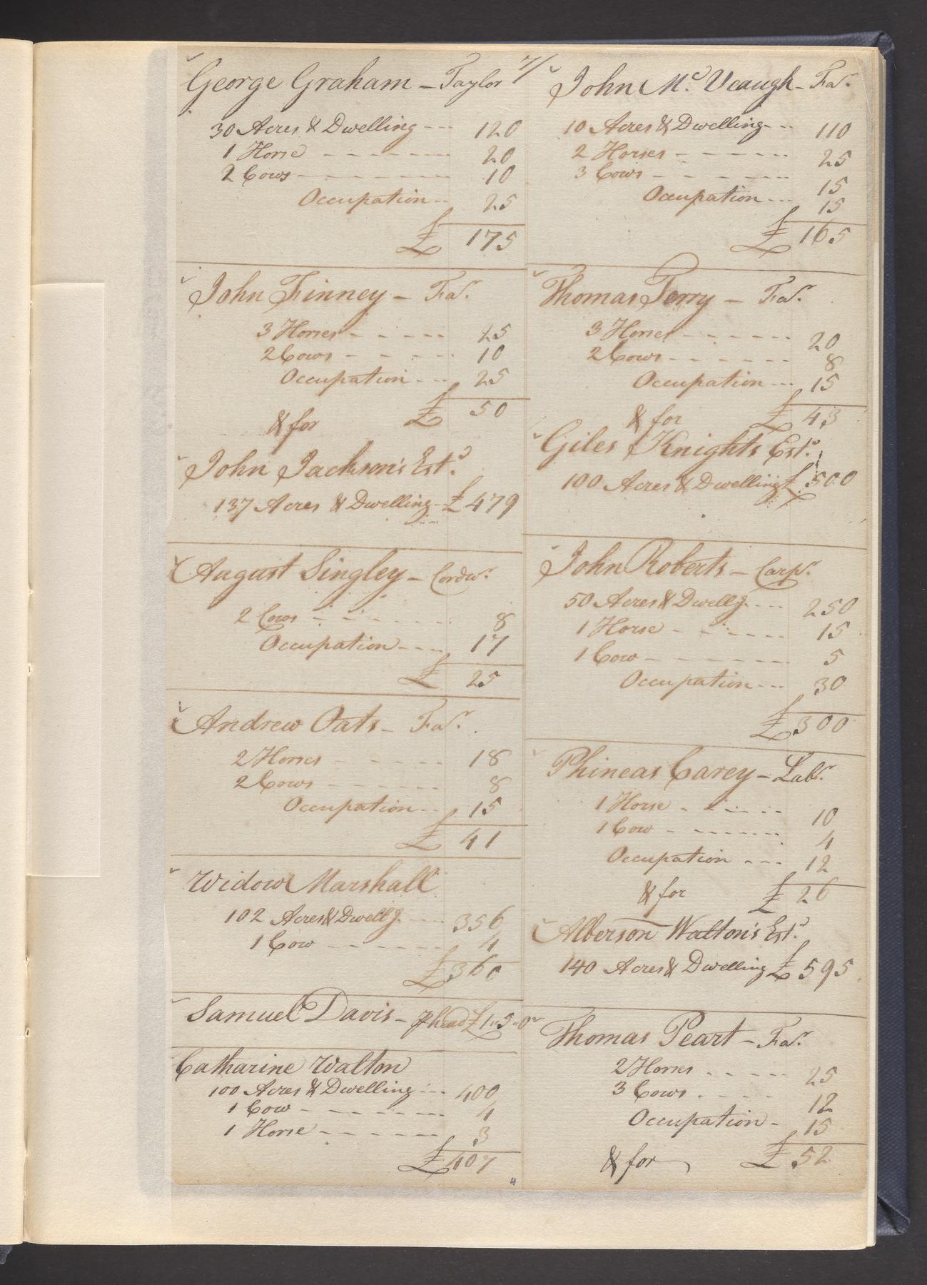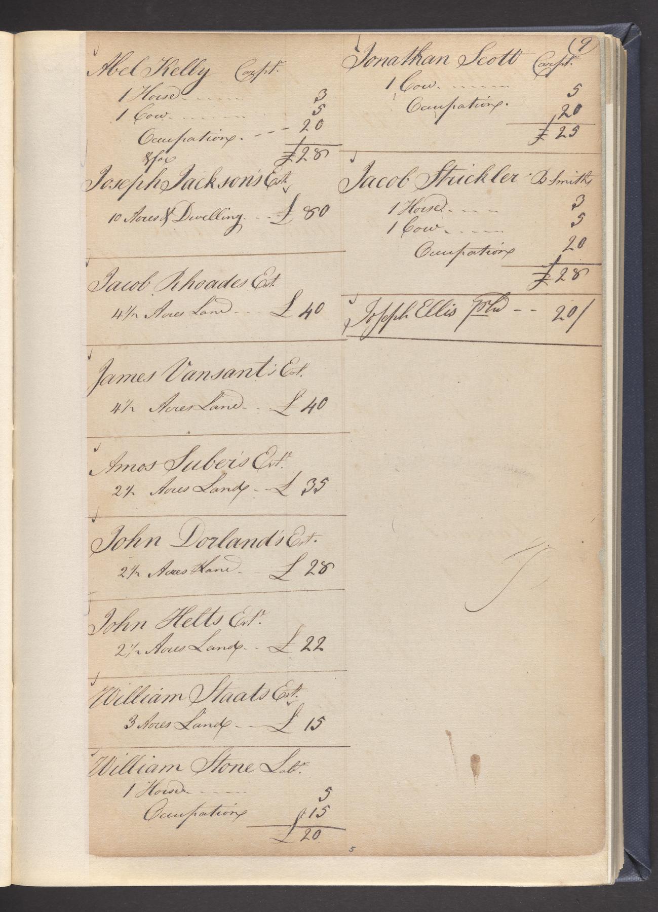 State tax assessment ledger for Byberry Township for 1783, 1785-1787. Lists taxable's name, occupation, list of property taxed (chiefly, real estate but some entries include personal property) and assessed value. County tax assessment ledgers for Byberry Township for 1797-1803, which list the taxable's name, and occasionally occupation; total assessed value of property and total tax only.