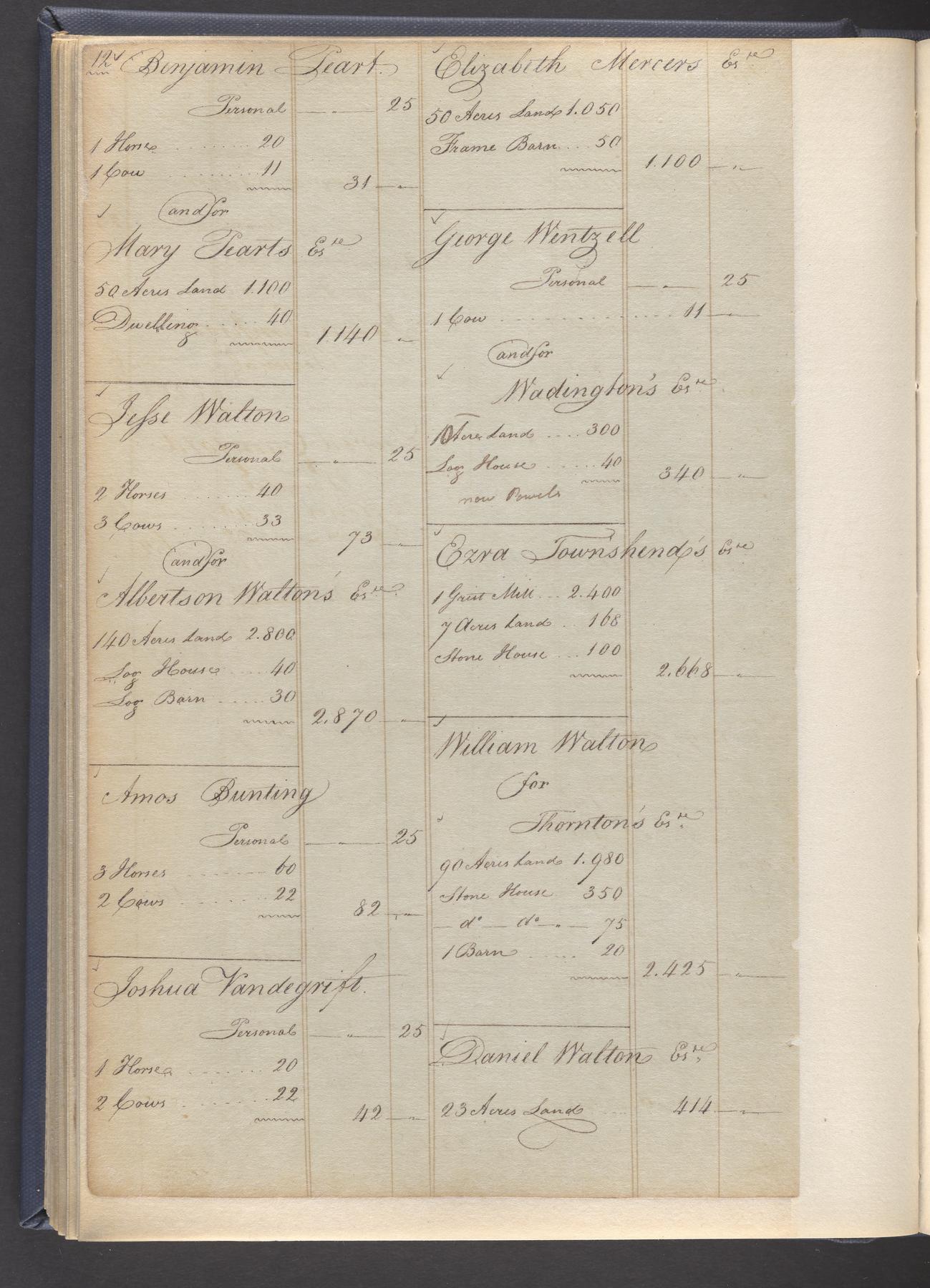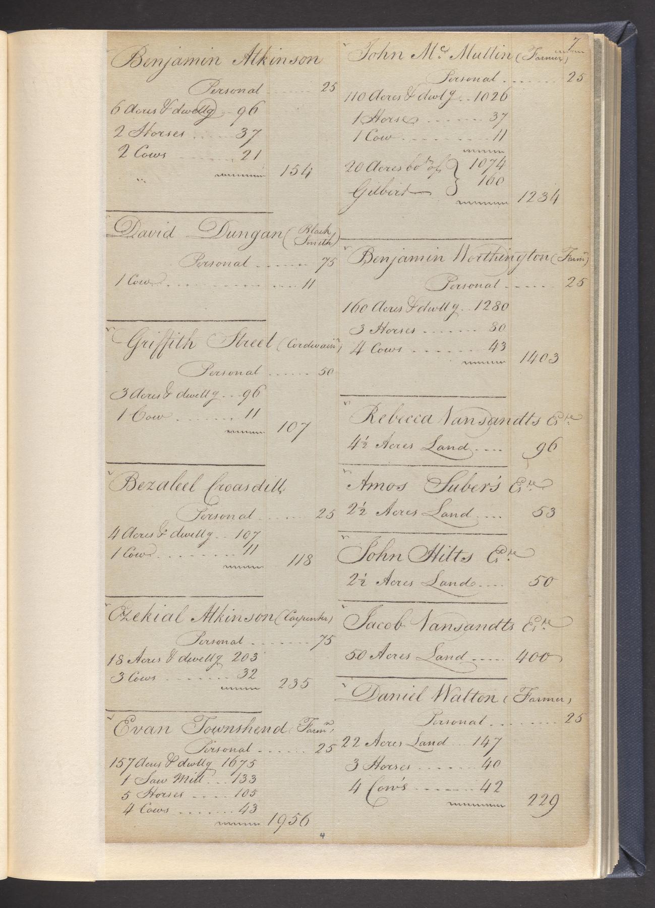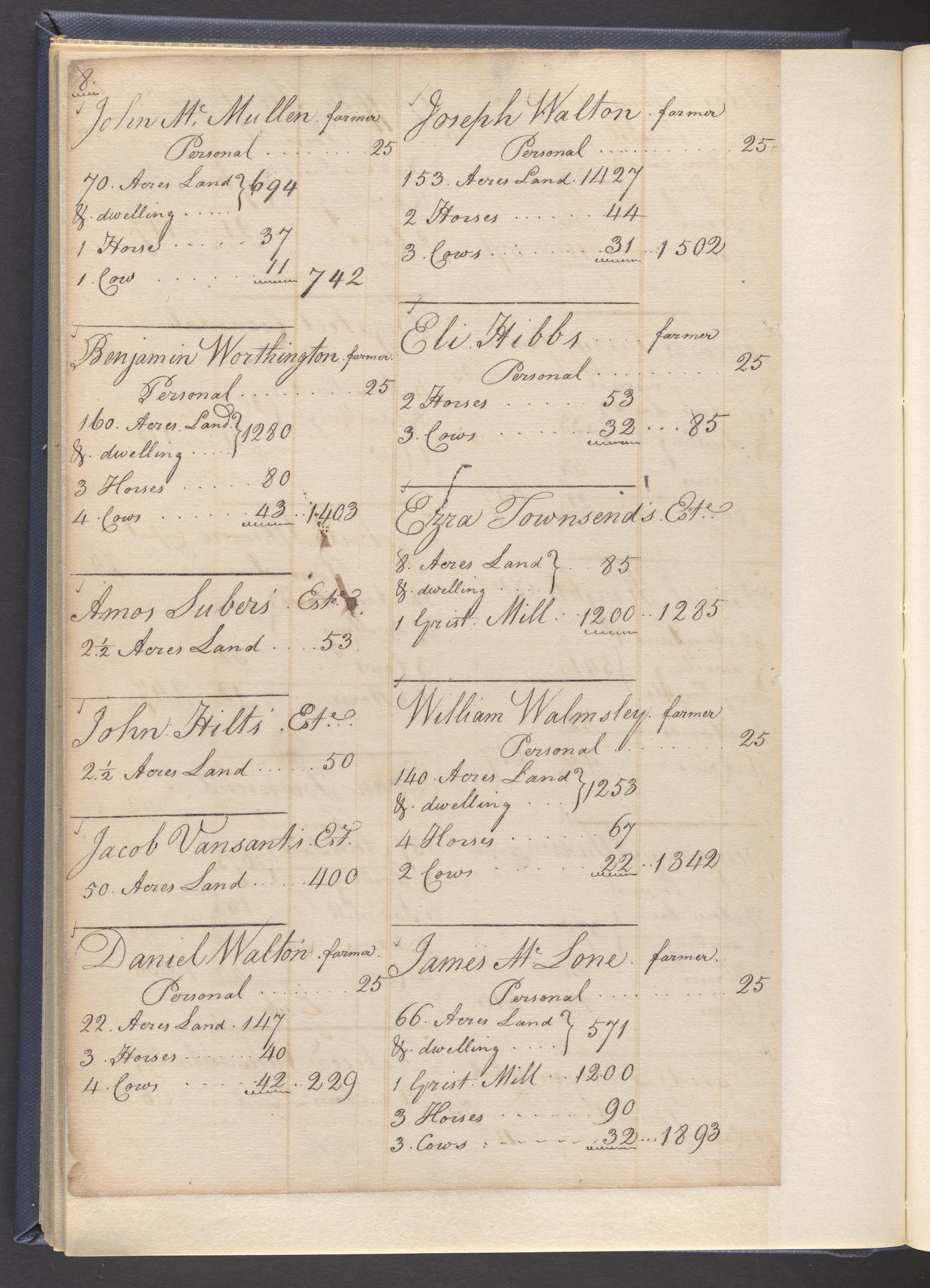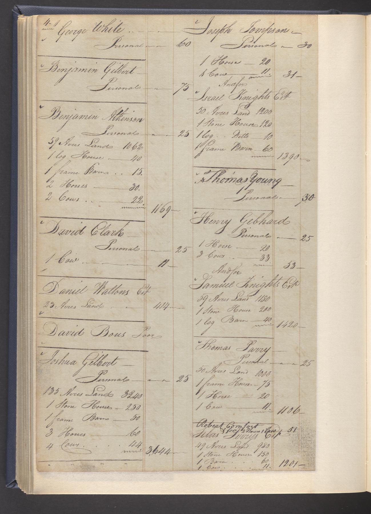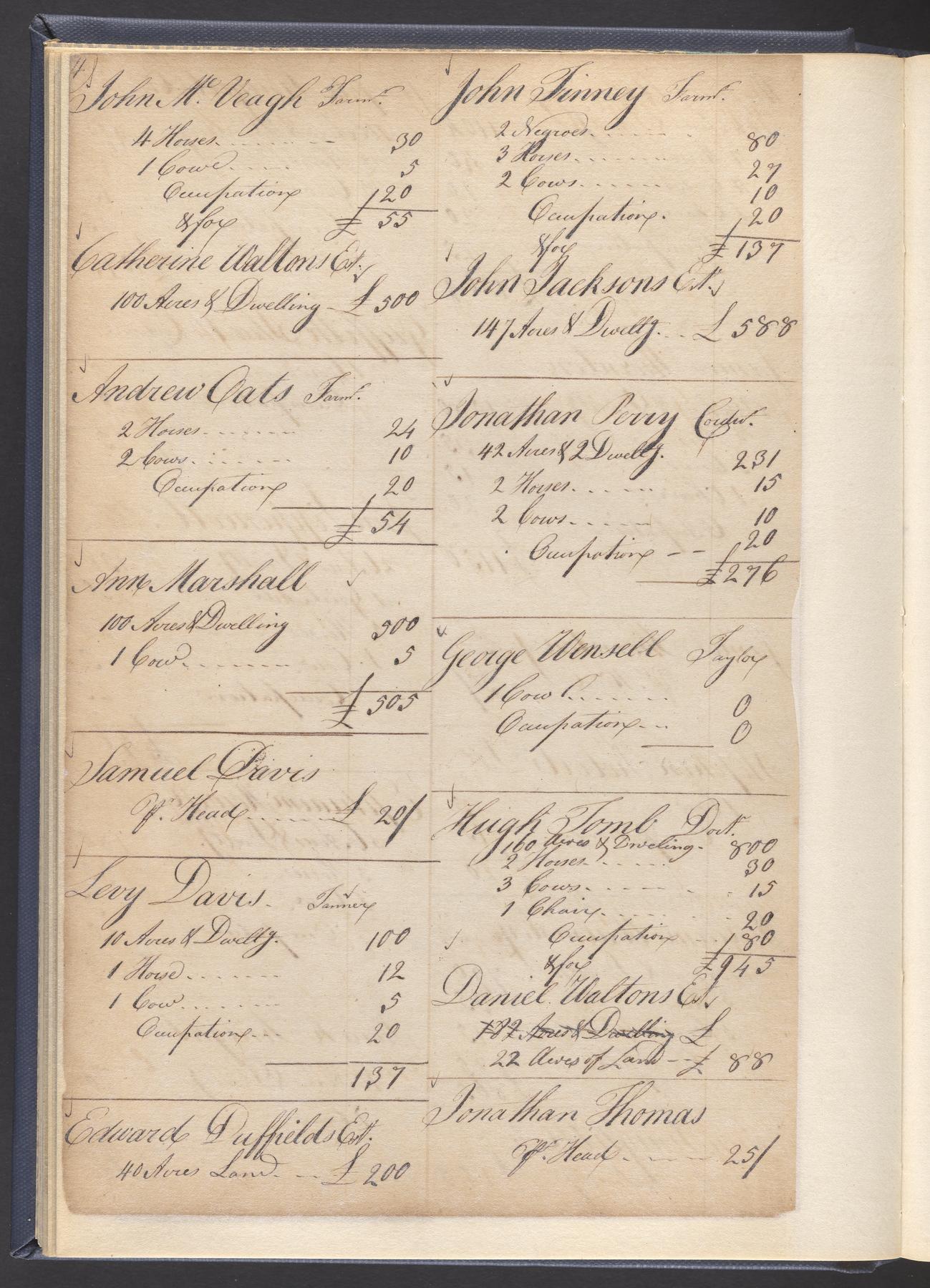 State tax assessment ledger for Byberry Township for 1783, 1785-1787. Lists taxable's name, occupation, list of property taxed (chiefly, real estate but some entries include personal property) and assessed value. County tax assessment ledgers for Byberry Township for 1797-1803, which list the taxable's name, and occasionally occupation; total assessed value of property and total tax only.