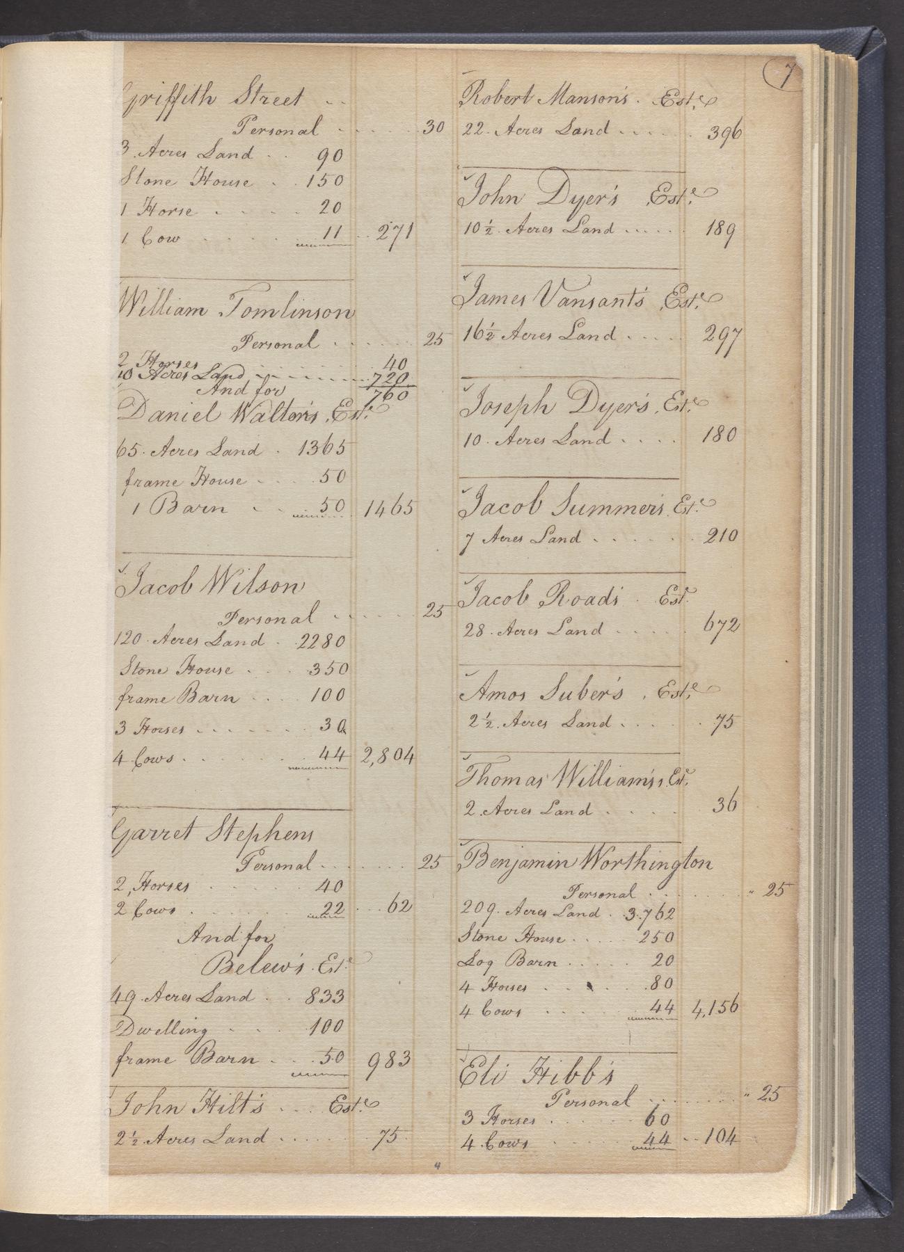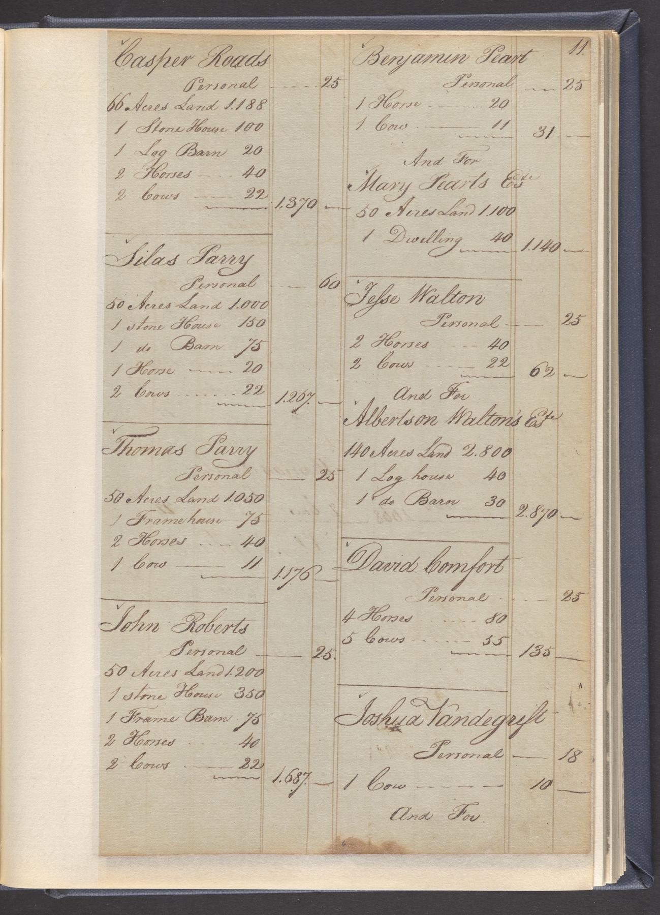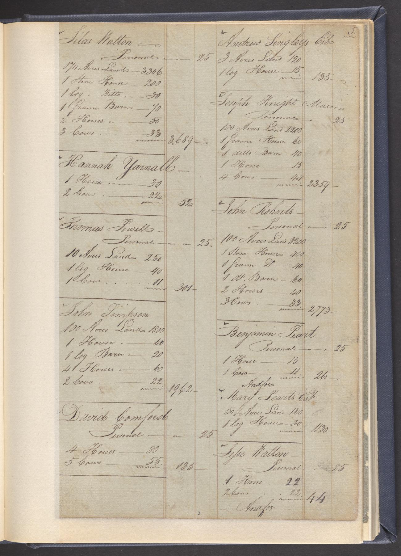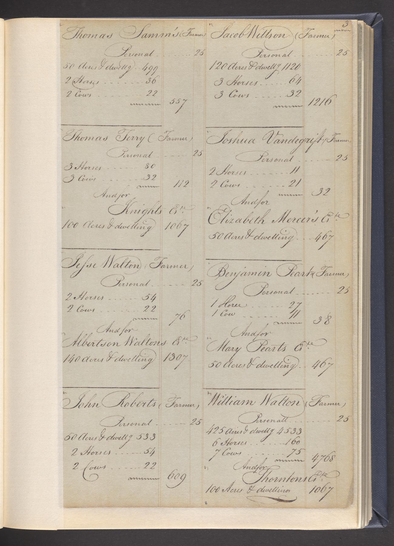 State tax assessment ledger for Byberry Township for 1783, 1785-1787. Lists taxable's name, occupation, list of property taxed (chiefly, real estate but some entries include personal property) and assessed value. County tax assessment ledgers for Byberry Township for 1797-1803, which list the taxable's name, and occasionally occupation; total assessed value of property and total tax only.