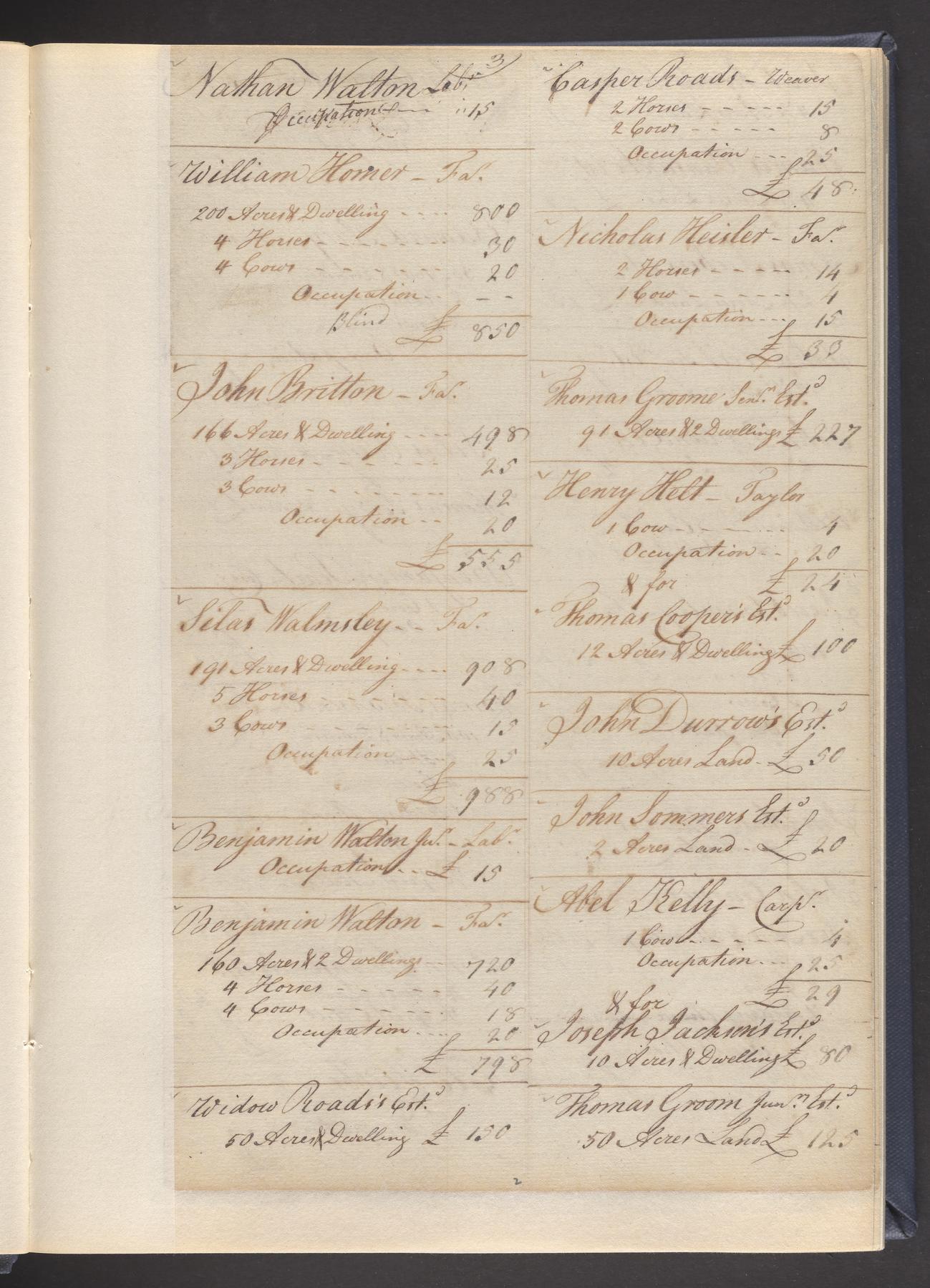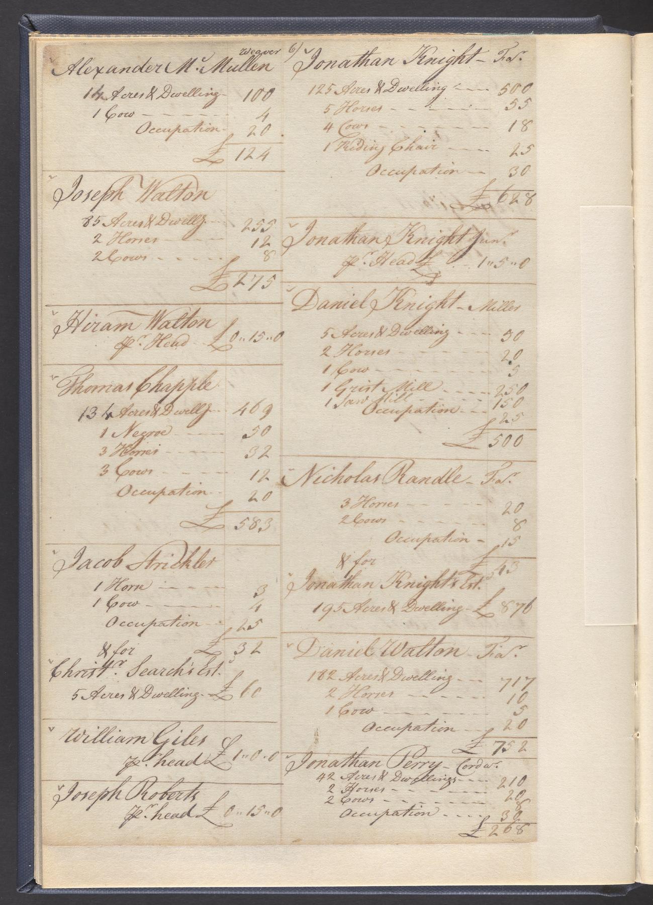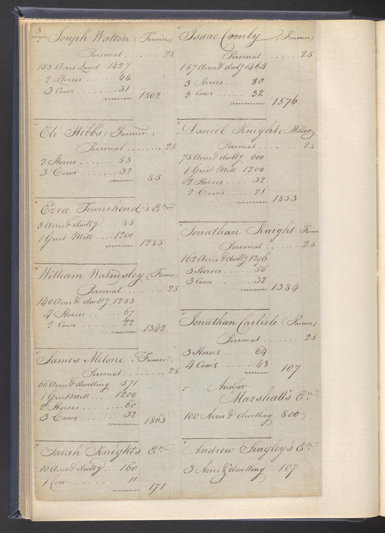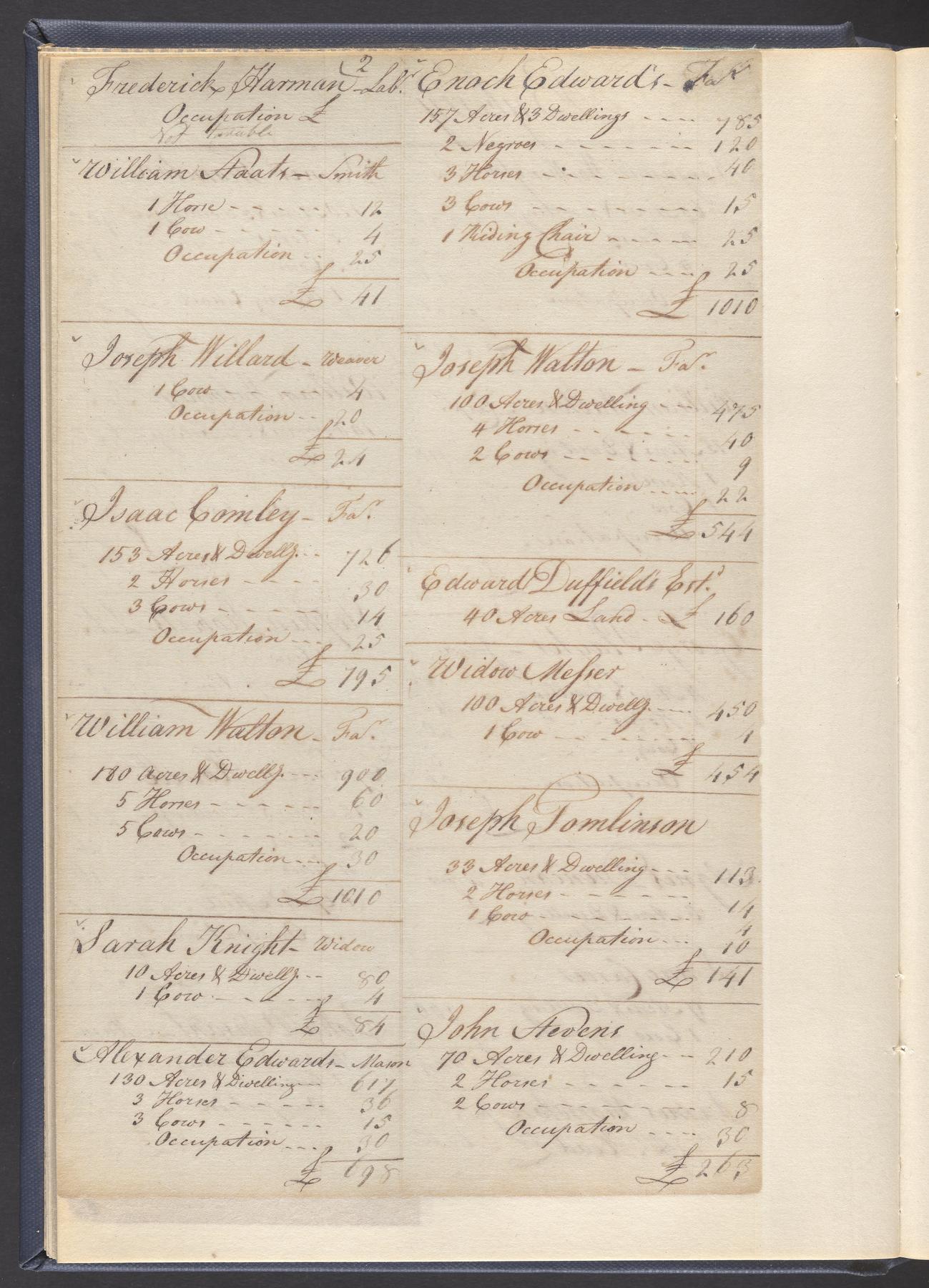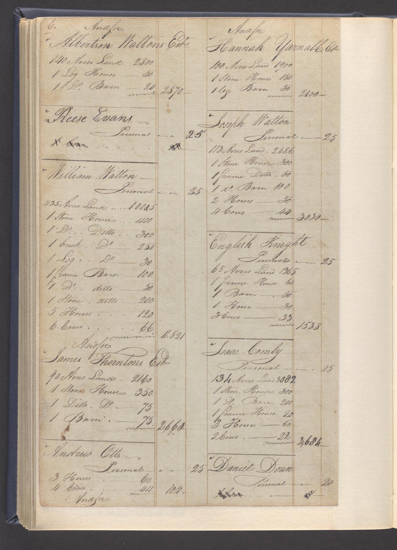 State tax assessment ledger for Byberry Township for 1783, 1785-1787. Lists taxable's name, occupation, list of property taxed (chiefly, real estate but some entries include personal property) and assessed value. County tax assessment ledgers for Byberry Township for 1797-1803, which list the taxable's name, and occasionally occupation; total assessed value of property and total tax only.
