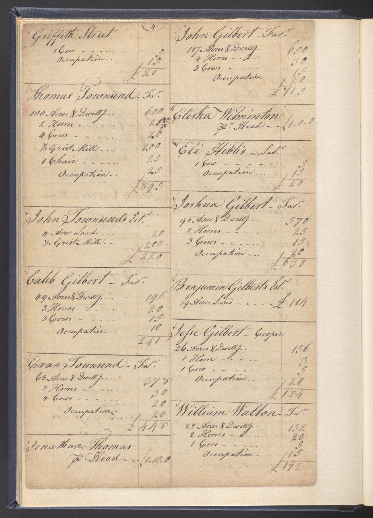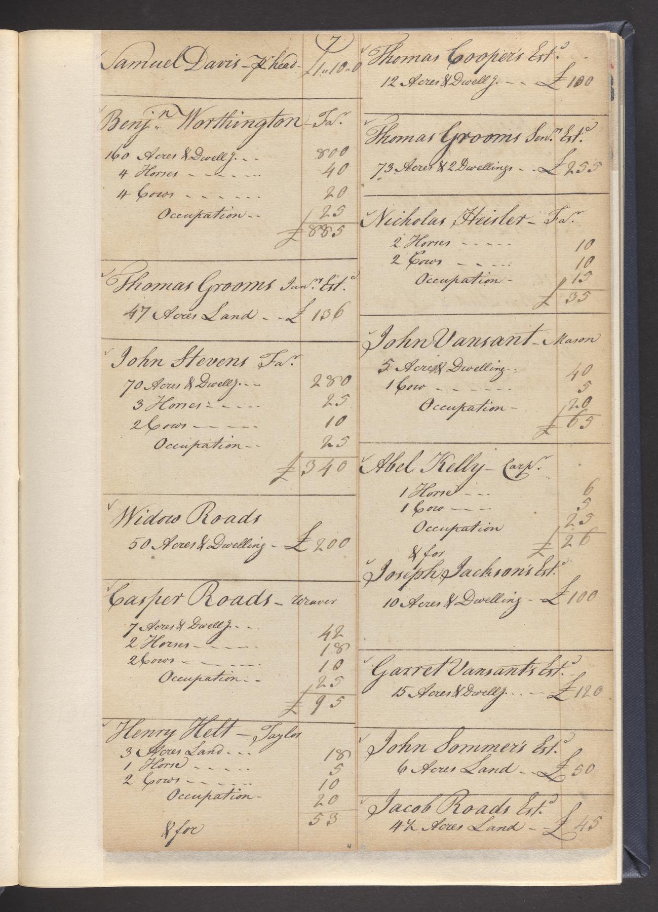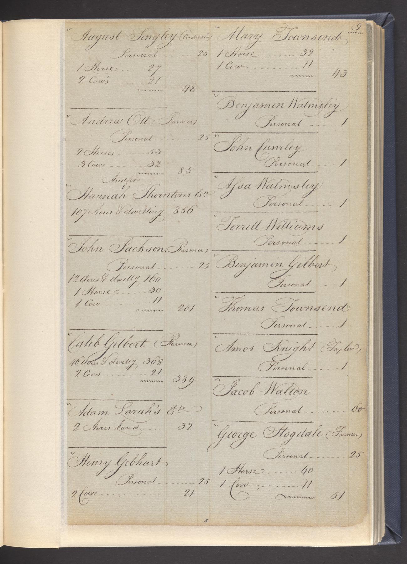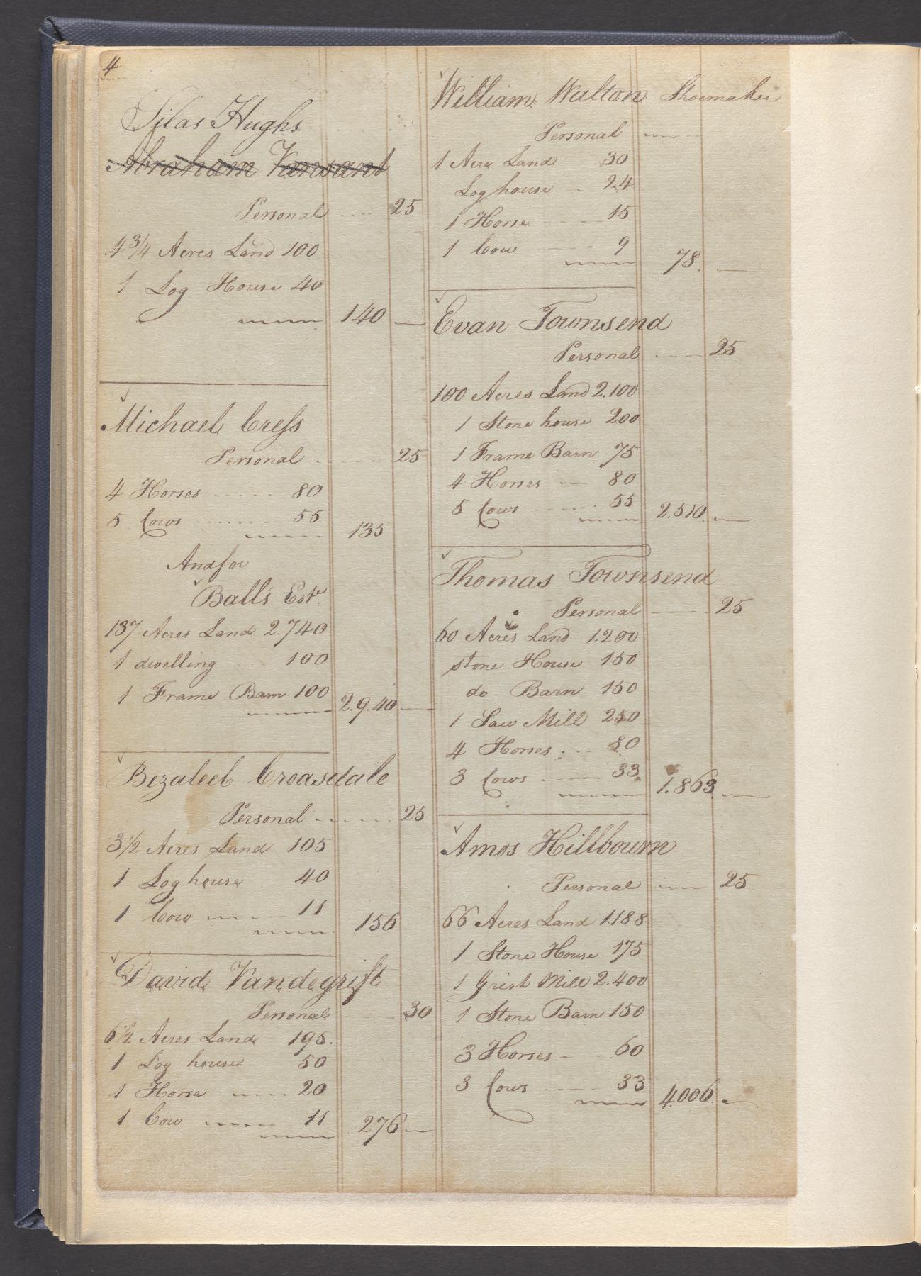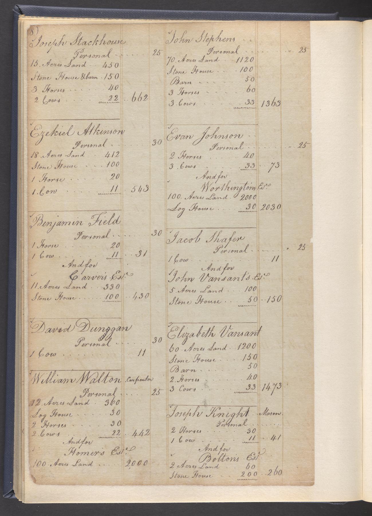 State tax assessment ledger for Byberry Township for 1783, 1785-1787. Lists taxable's name, occupation, list of property taxed (chiefly, real estate but some entries include personal property) and assessed value. County tax assessment ledgers for Byberry Township for 1797-1803, which list the taxable's name, and occasionally occupation; total assessed value of property and total tax only.