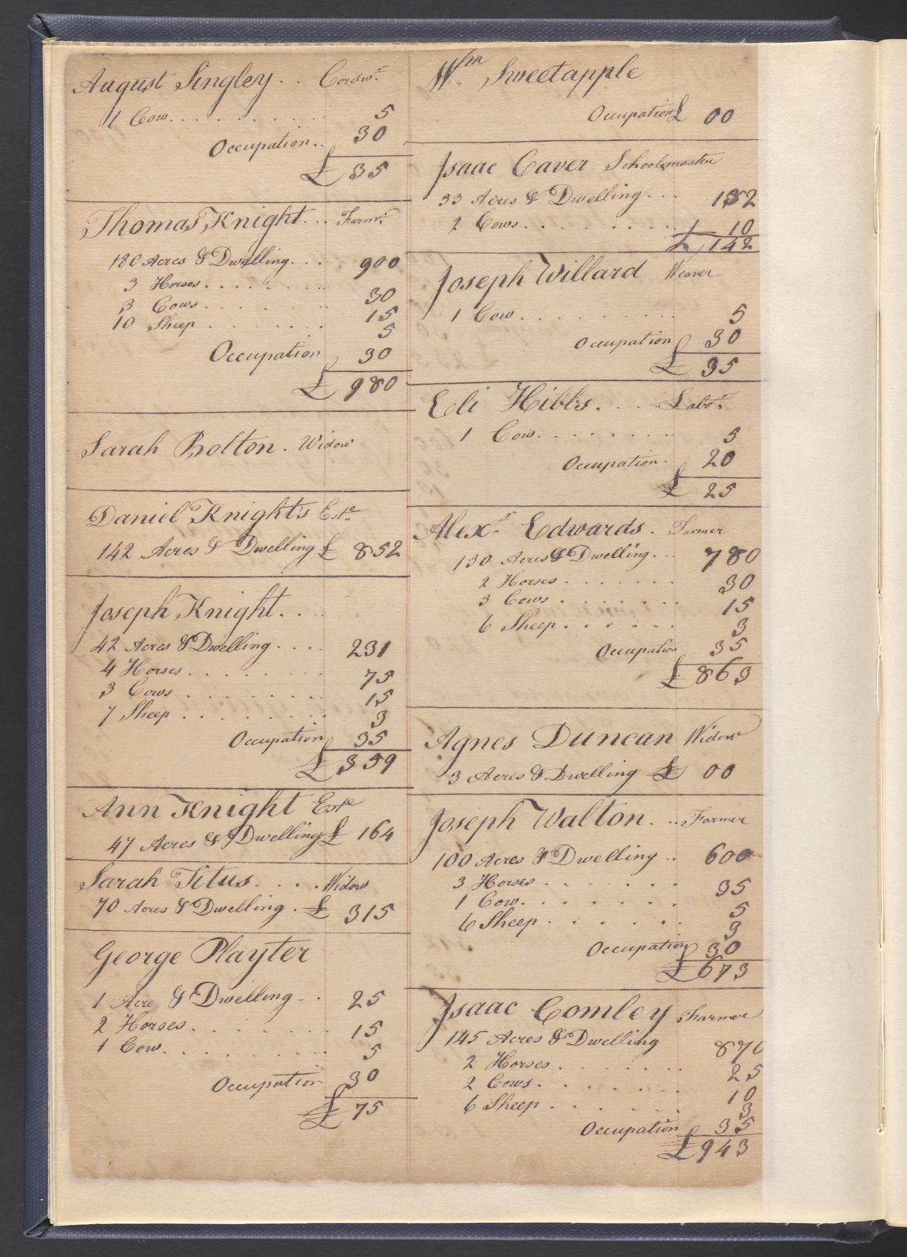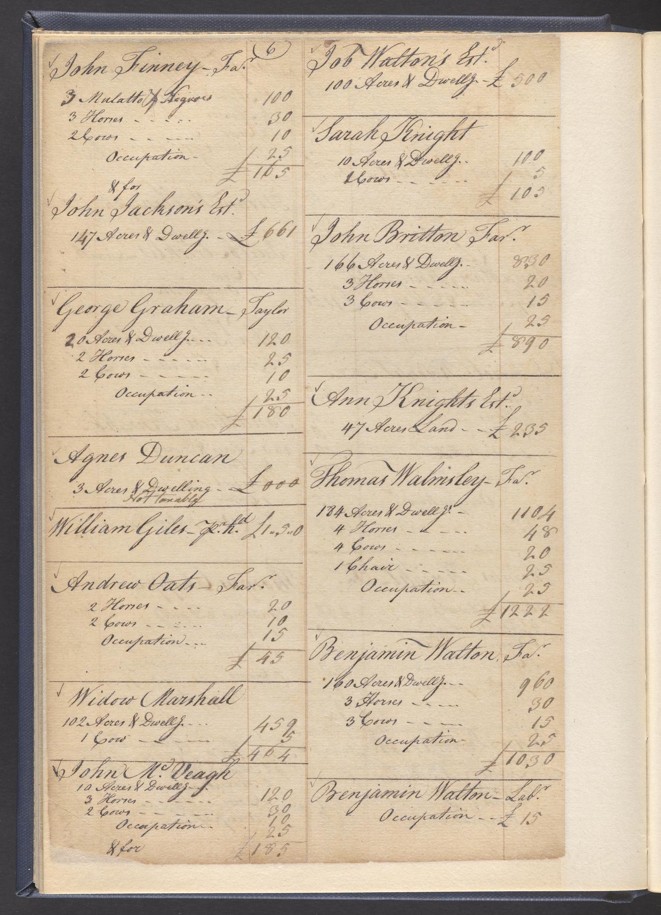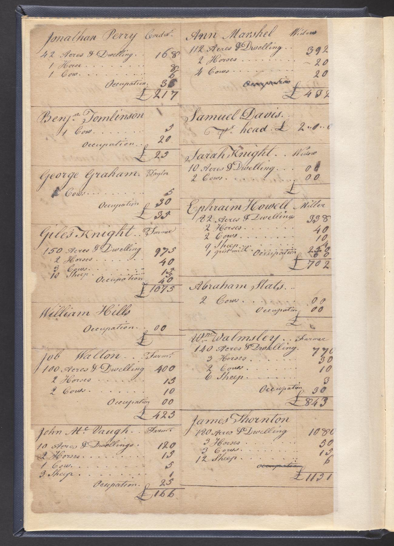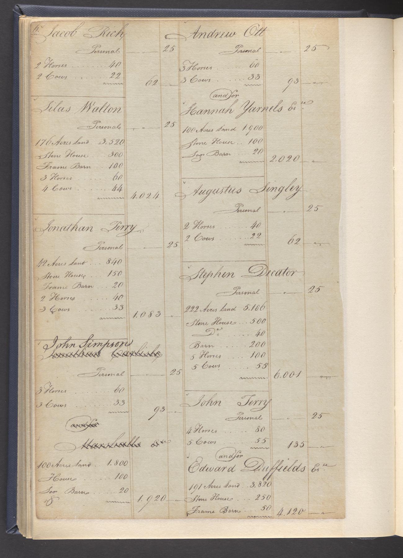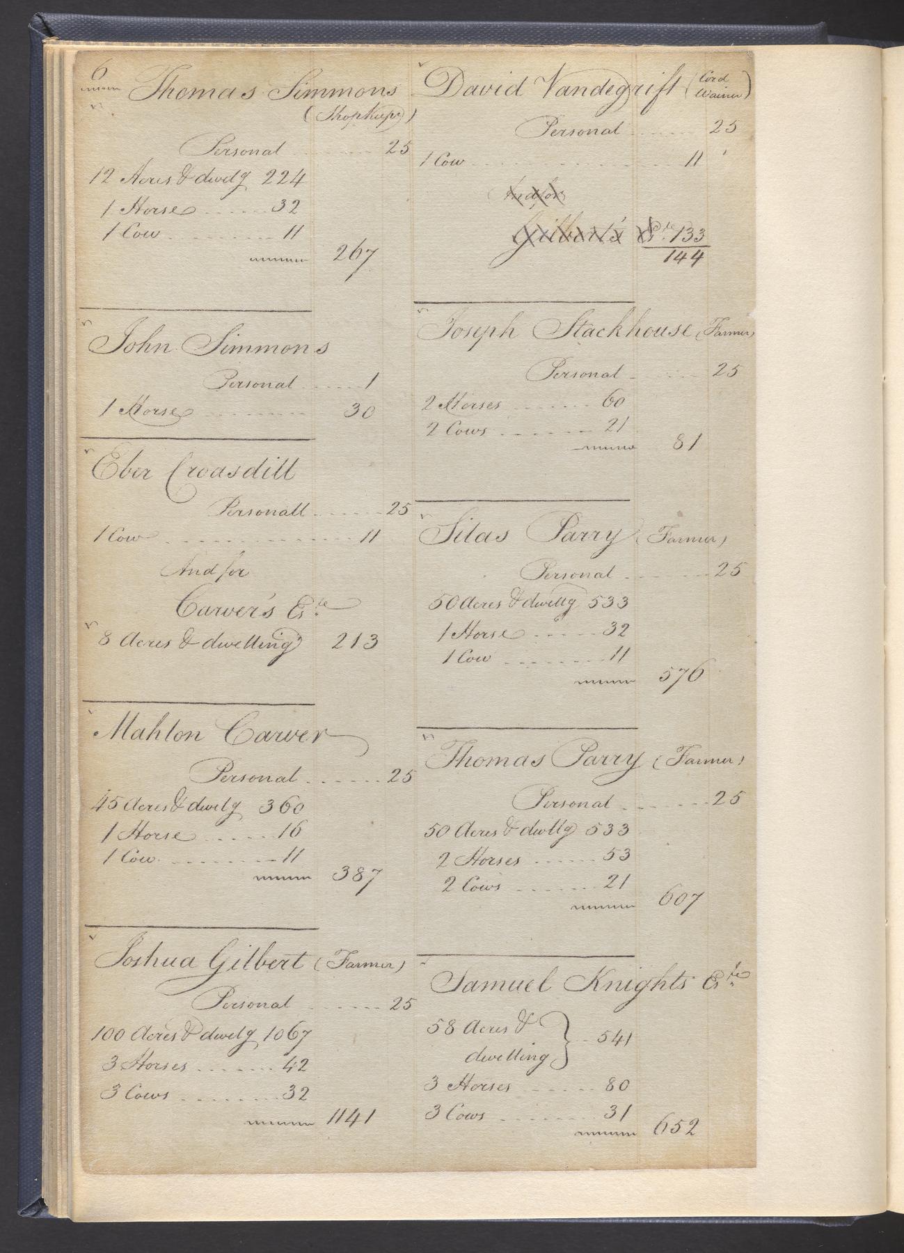 State tax assessment ledger for Byberry Township for 1783, 1785-1787. Lists taxable's name, occupation, list of property taxed (chiefly, real estate but some entries include personal property) and assessed value. County tax assessment ledgers for Byberry Township for 1797-1803, which list the taxable's name, and occasionally occupation; total assessed value of property and total tax only.